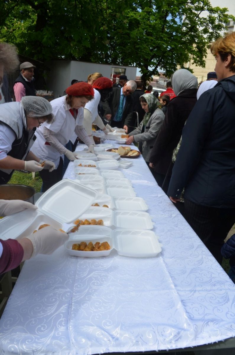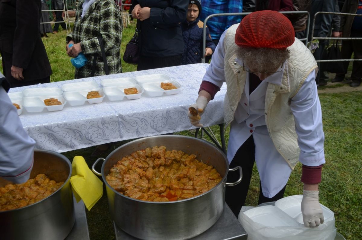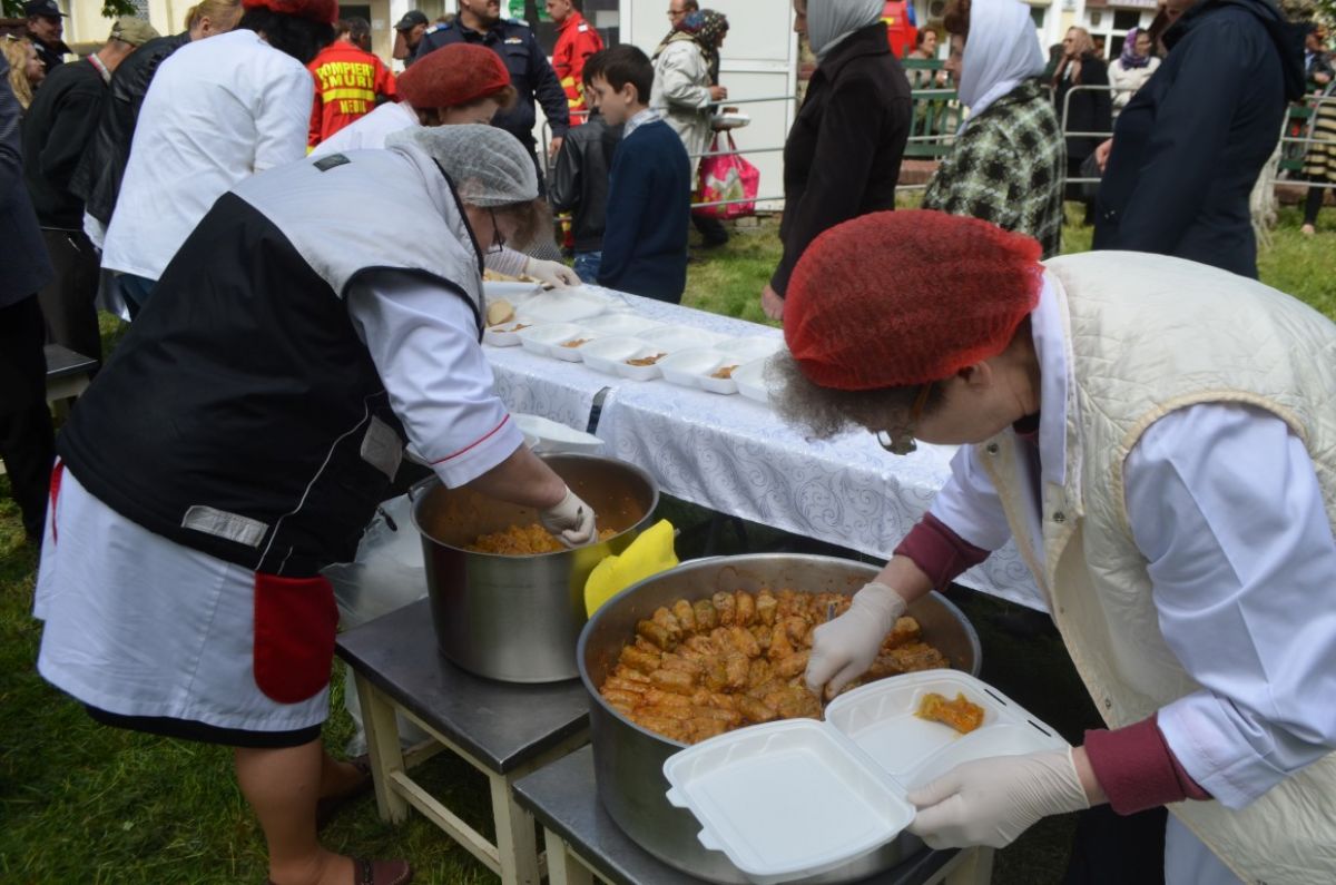 Credincioșii s-au așezat civilizat la coadă și și-au așteptat răbdători rândul. Iar sarmale au fost pentru toată lumea pentru că bucătăresele de la Cantina de Ajutor Social a Primăriei au pregătit 6.000 de bucăți noaptea trecută.