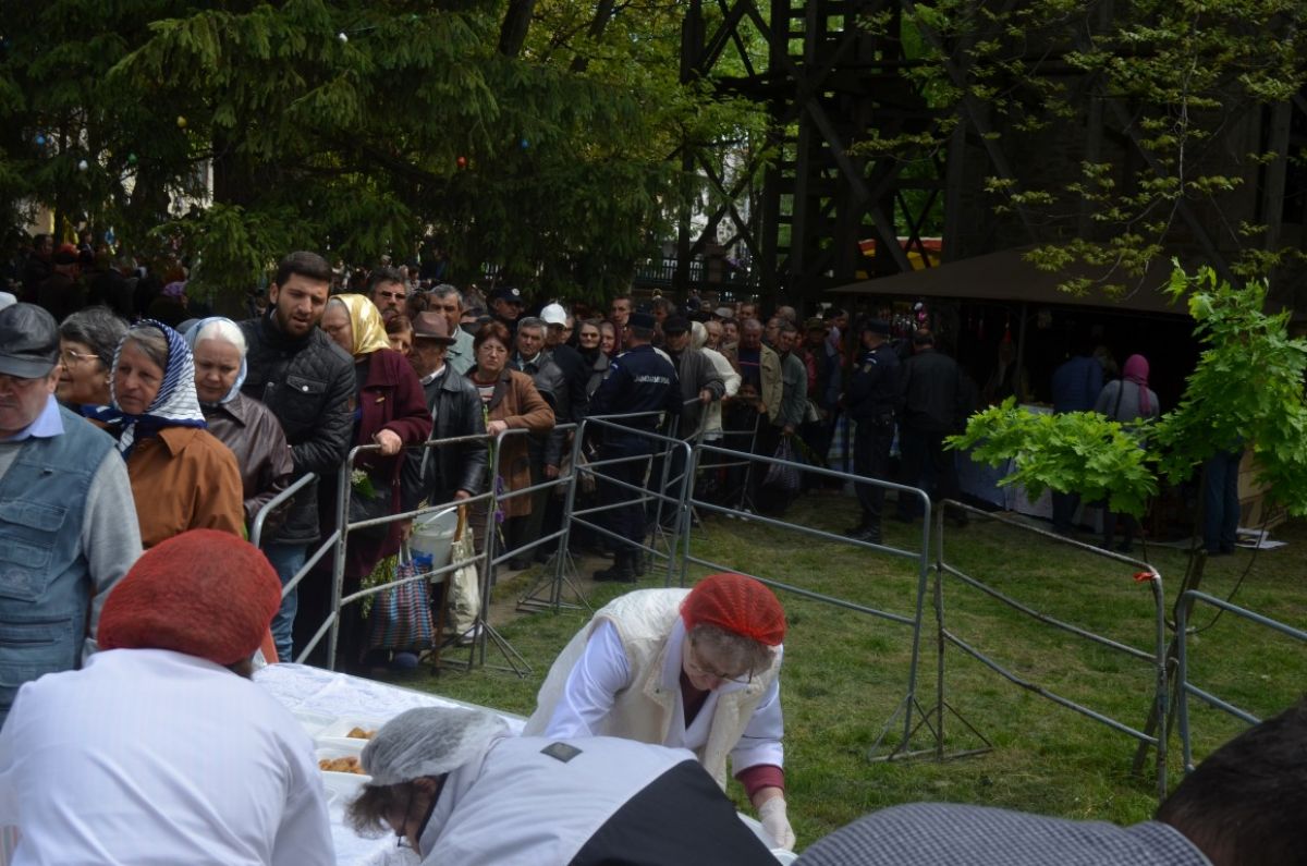 Anii trecuți botoșănenii se călcau în picioare și se umileau pentru porția de sarmale oferită la finalul slujbei religioase de la Biserica Sfântul Gheorghe. Anul acesta, tabloul a fost oarecum diferit.