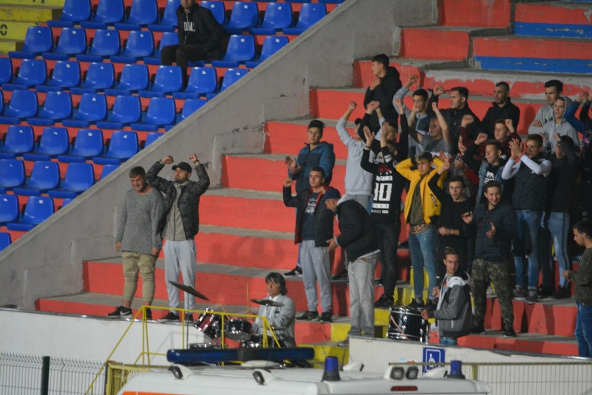 Atmosfera este animată și de prezența unei numeroase galerii a ”câinilor roșii”, care a umplut sectorul rezervat fanilor oaspeți.