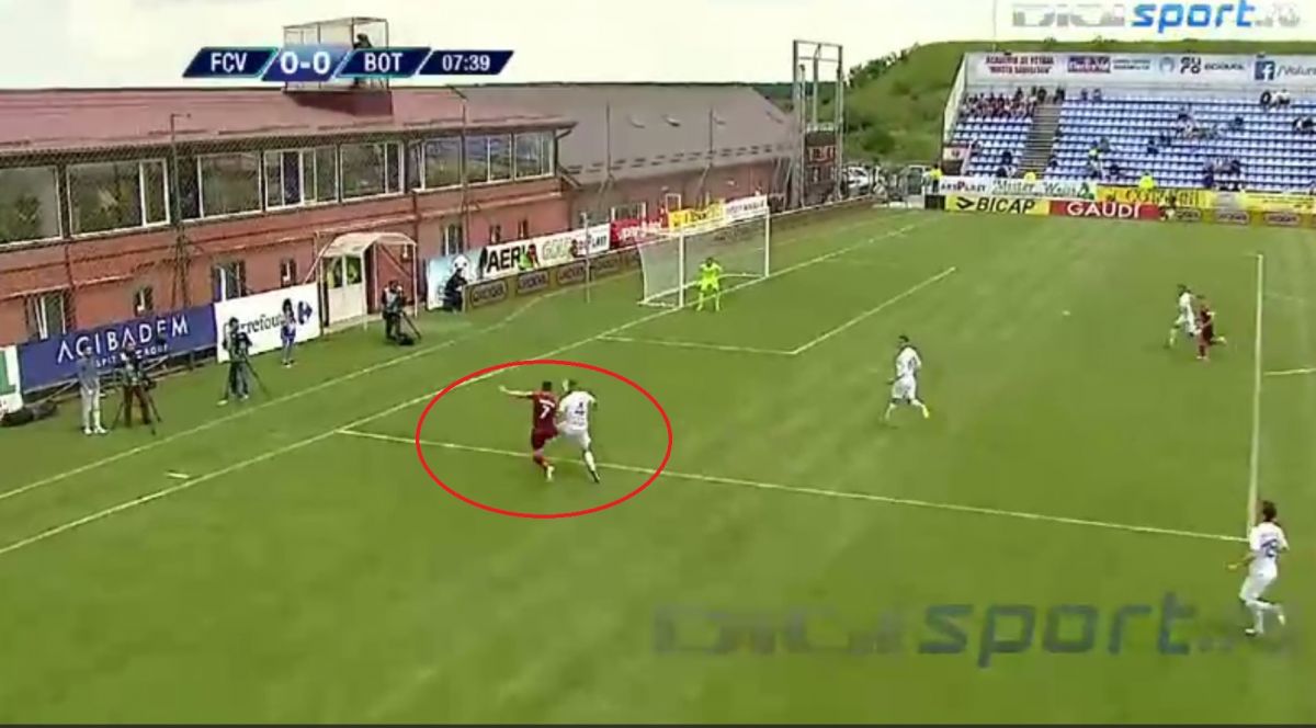 În minutul 7 al partidei, Ivanovici a fost faultat de Miron. Atacantul celor de la Voluntari se afla in marginea careului, moment în care fundașul botoșănean a încercat să-i oprească incursiunea.