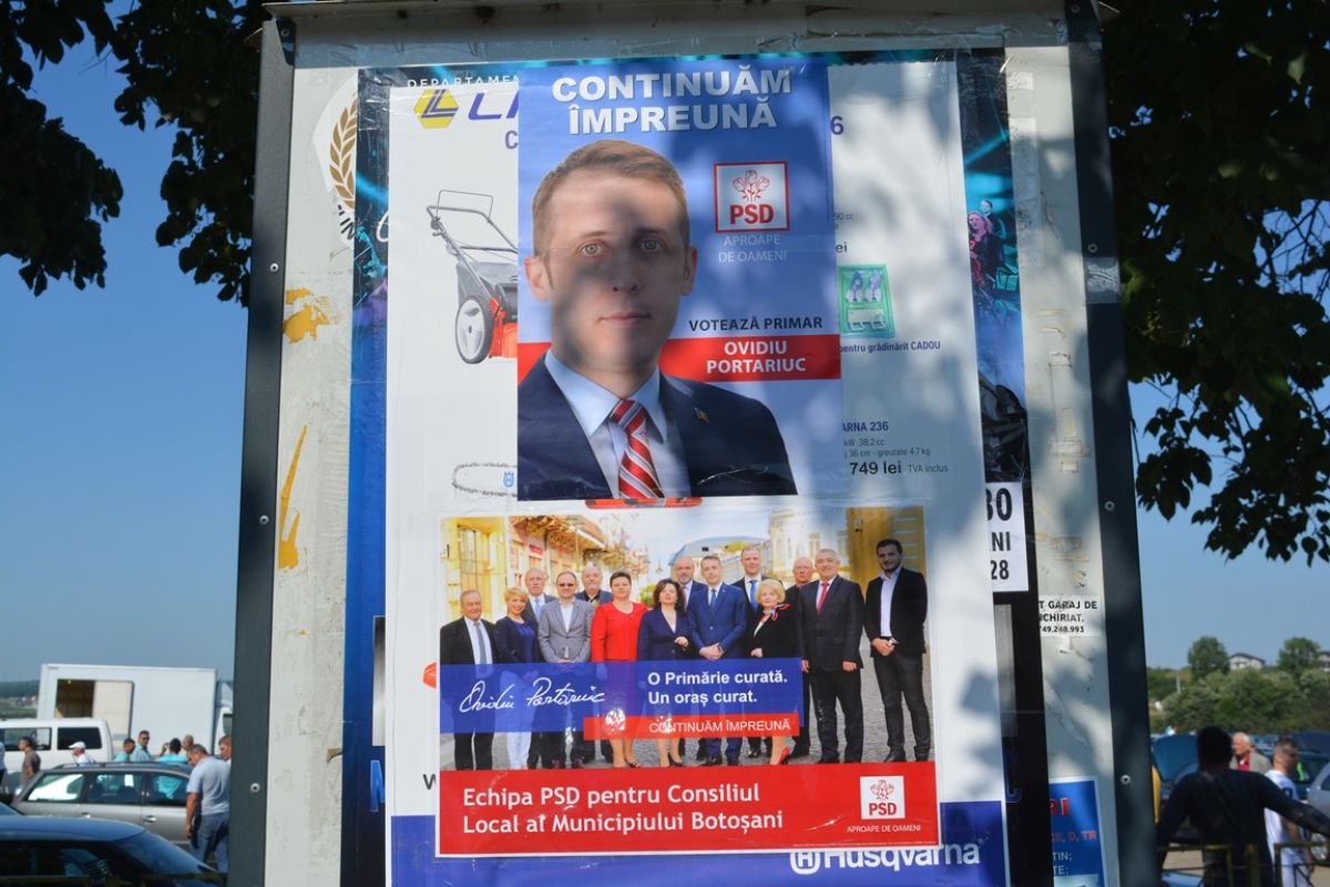Chiar la intrarea în poligonul ACR un tânăr lipise un afiș al PSD cu sloganul ”Continuăm împreună” și candidații la Consiliul Local Botoșani. A făcut-o sub atenta supraveghere a directorului ACR Botoșani, Dumitru Ghițun, fost consilier județean PSD.