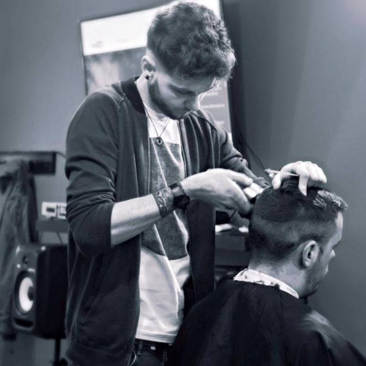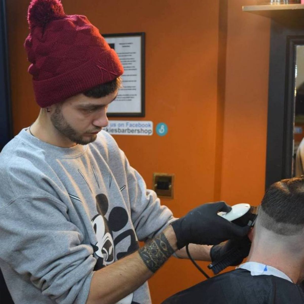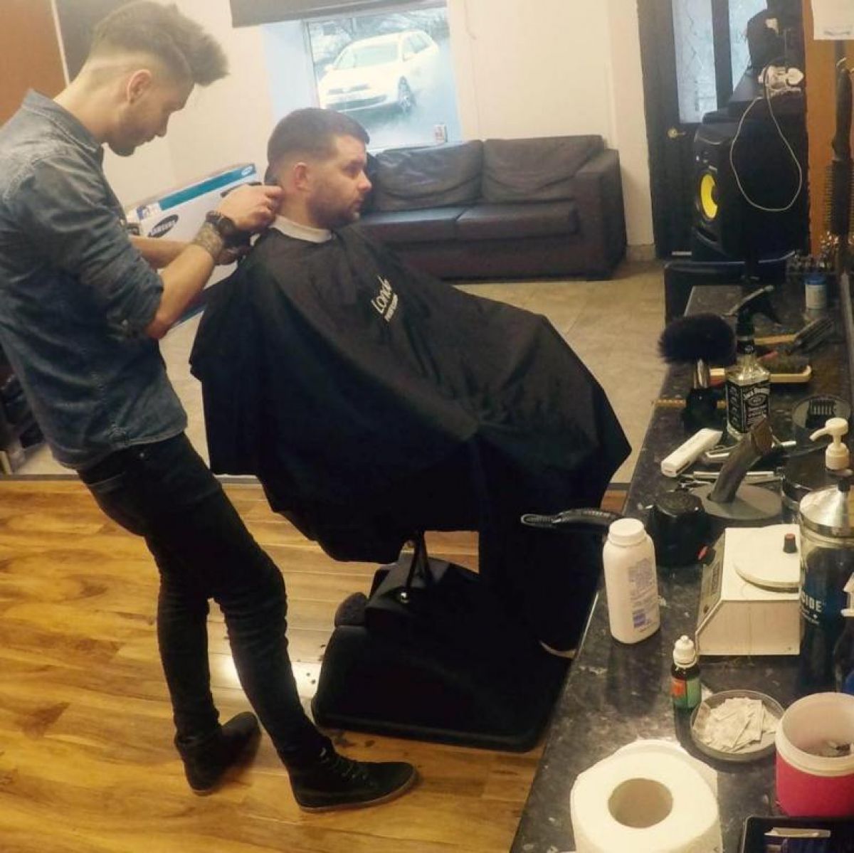 Acesta este patronul ”Jackie 's Barbershop” din Glasgow și membru fondator al Asociației Frizerilor Români.