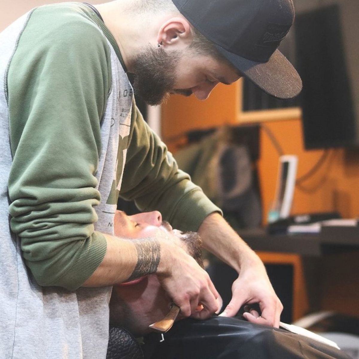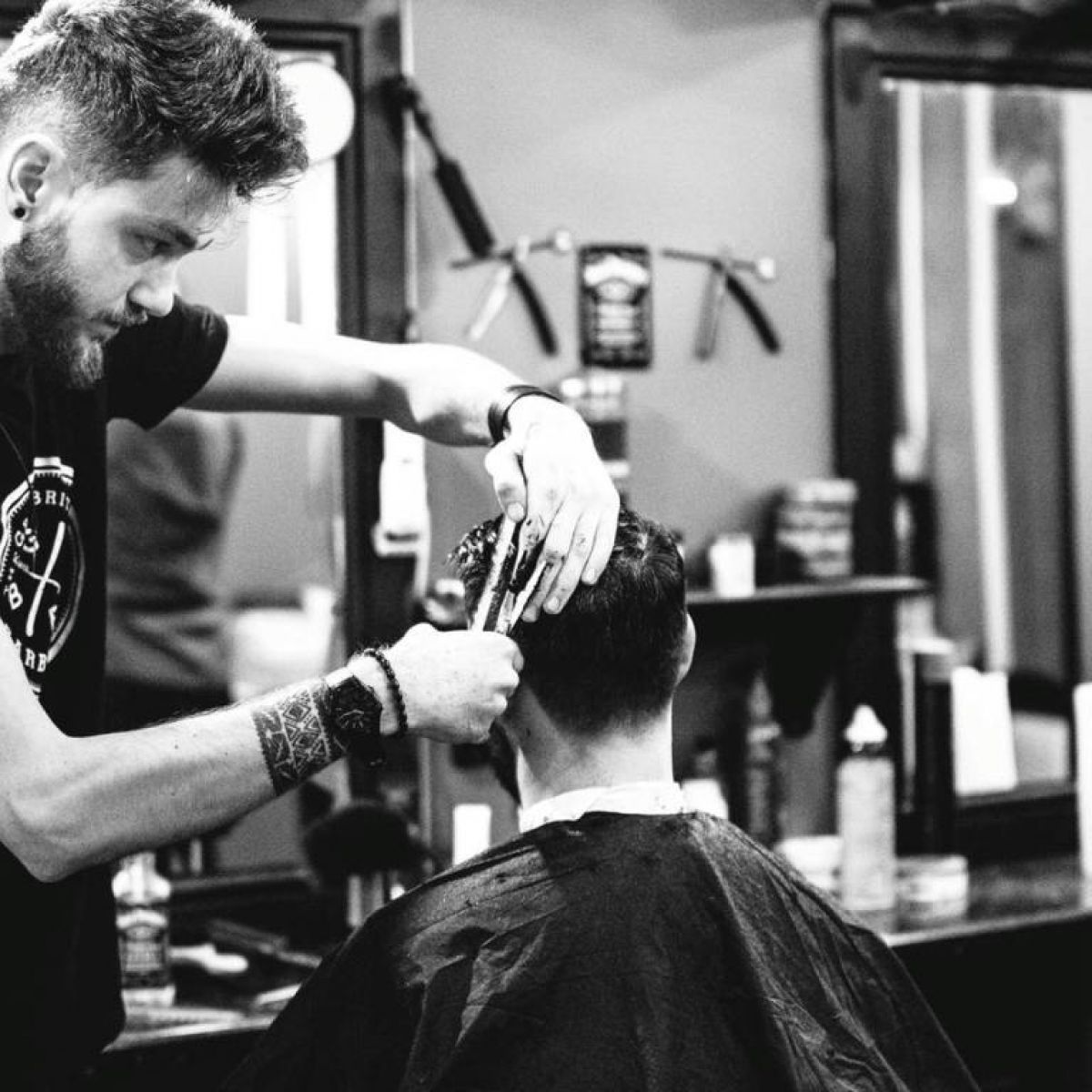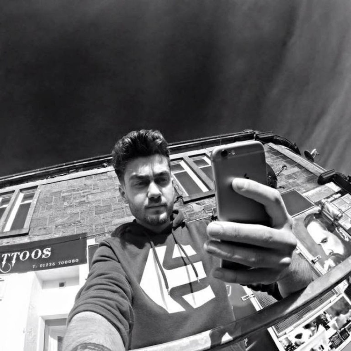 Acesta este patronul ”Jackie 's Barbershop” din Glasgow și membru fondator al Asociației Frizerilor Români.