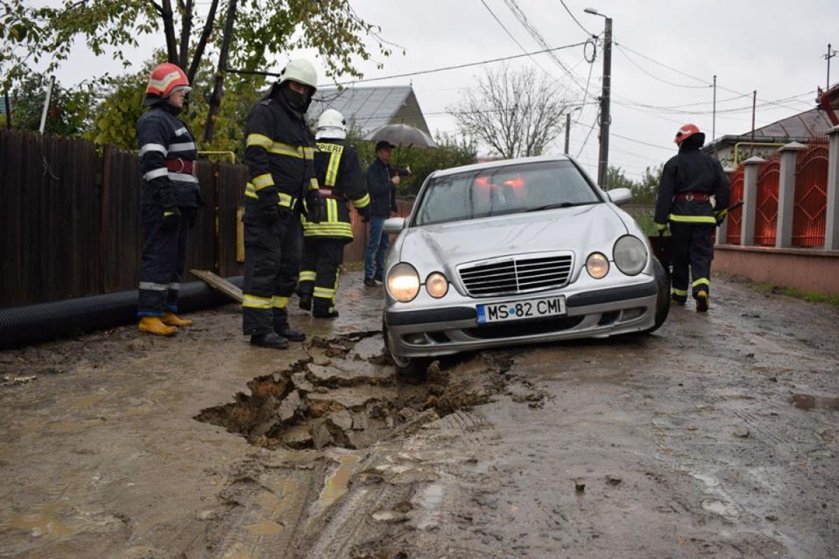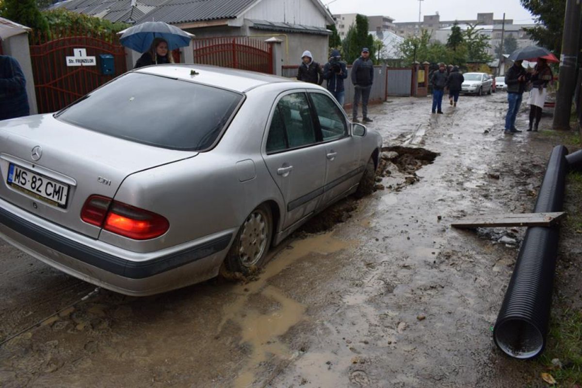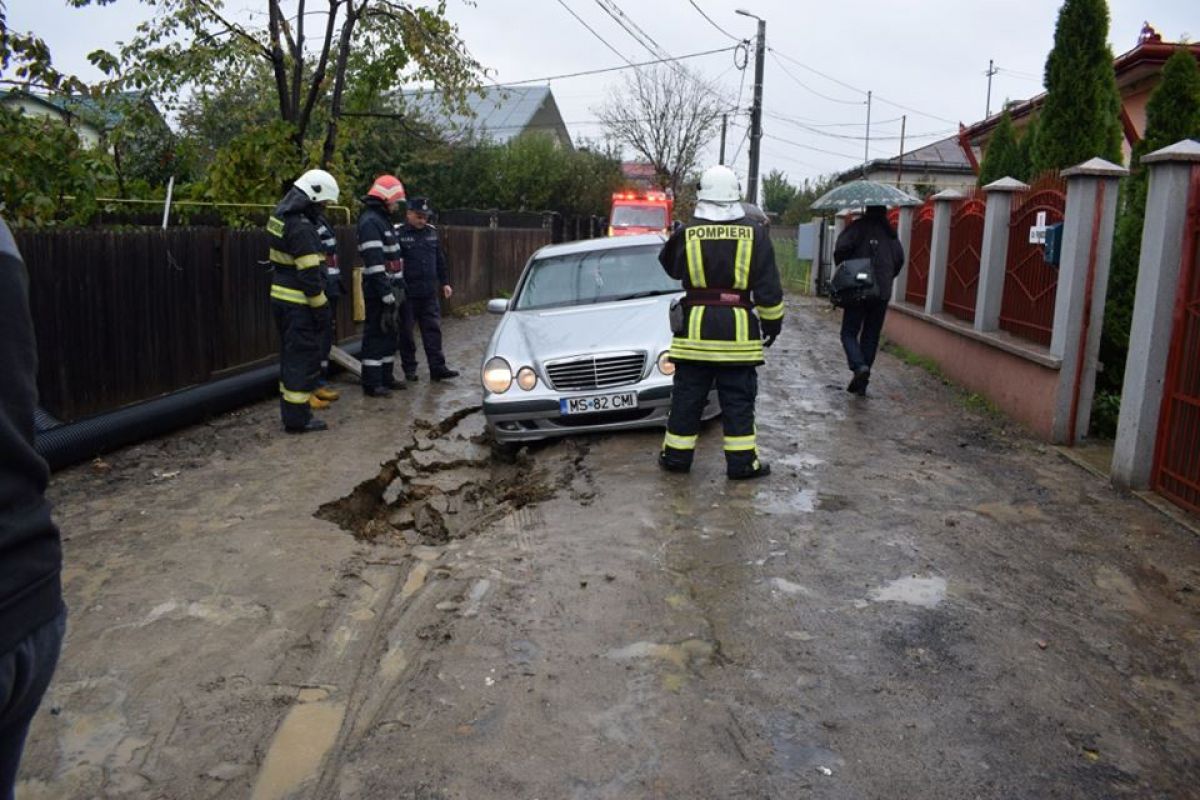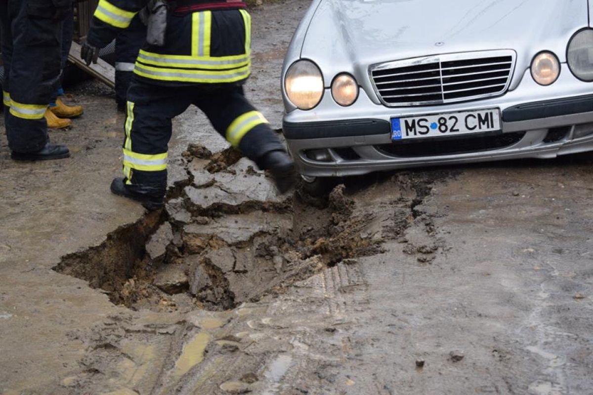 S-a întâmplat în urmă cu câteva zeci de minute pe strada Frunzelor din municipiu. Un autoturism marca Mercedes a rămas blocat după ce drumul pe care circula s-a prăbușit efectiv și pe o bucată de aproximativ un metru s-a căscat un crater adânc.