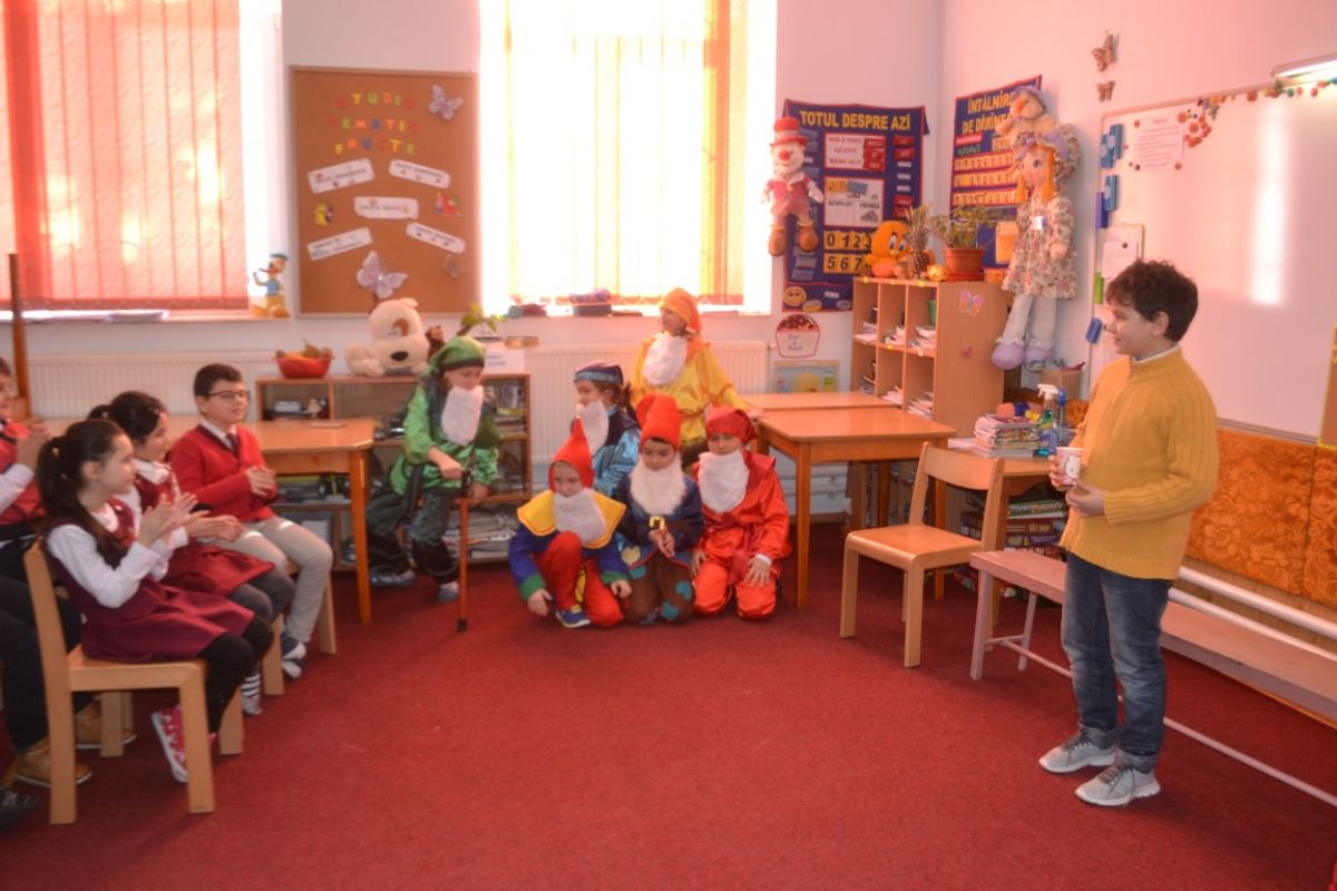 Piesa prezentată se numește „Amintirile piticilor uitați de vreme”. Astfel, câțiva elevi au jucat rolul unor pitici nefericiți în lumea rea în care trăiau. Aceștia erau aflau în căutarea unui suflet bun, care are grijă de lumea înconjurătoare.
