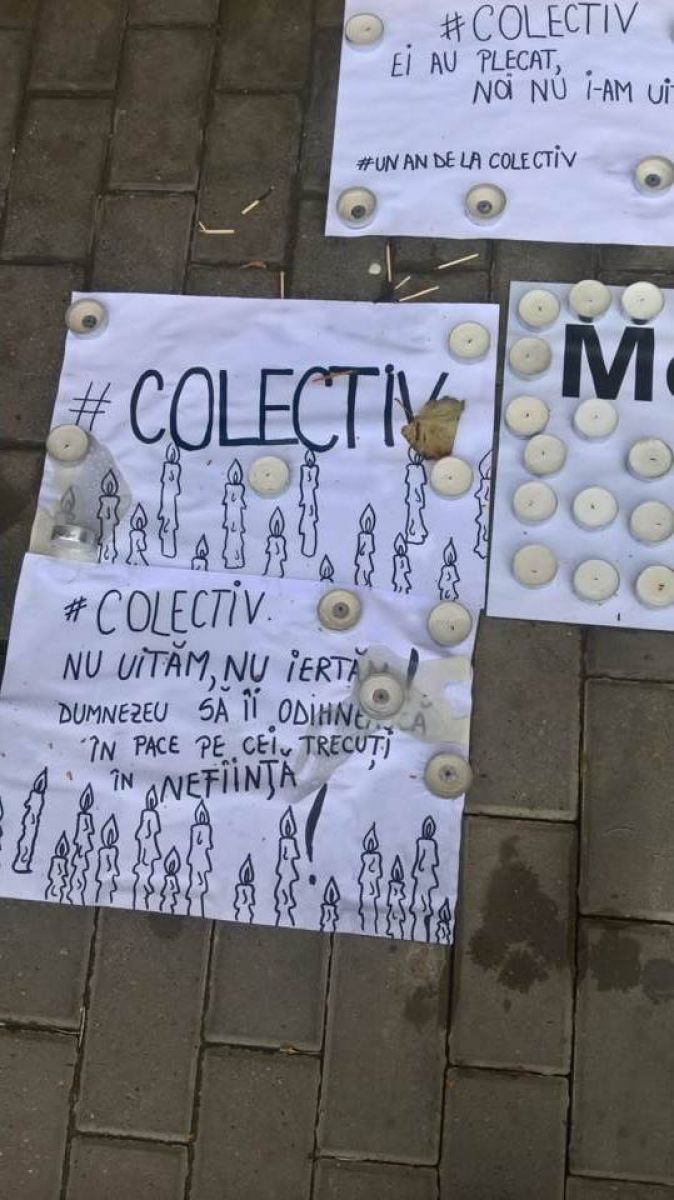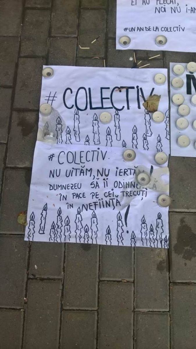 “Colectiv, nu iertăm, nu uităm! Dumnezeu să-i odihnească pe cei trecuți în neființă!”, “Colectiv – ei au plecat noi nu i-am uitat !”, “Când totul e cenușă, e timpul să fim noi un COLECTIV” , ,,Mereu alături de COLECTIV”, au fost câteva din mesajele aduse de liceeni.