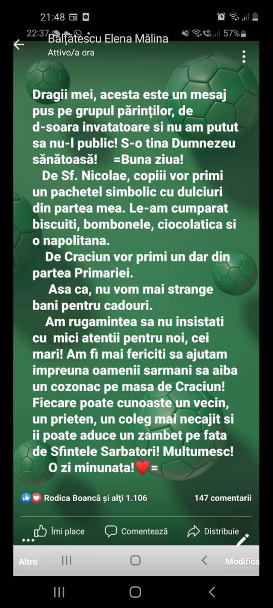 Reacțiile nu au întârziat să apară, sute de oameni au transmis felicitări tinerei învățătoare care a dat dovadă de altruism și s-a gândit și la cei mai puțin norocoși în preajma sărbătorilor.
