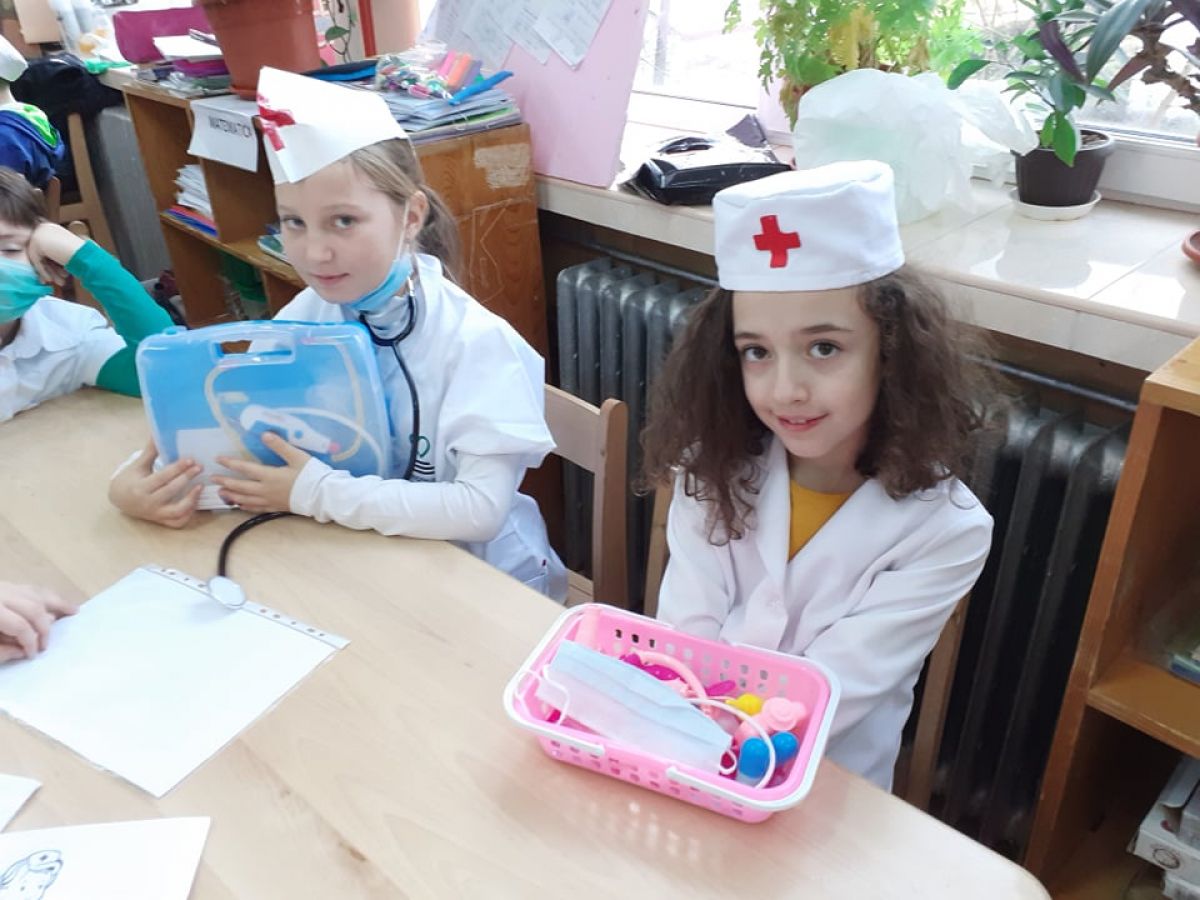 Medicii costumați în alb, au demonstrat că știu să folosească corect aparatura medicală. Au folosit stetoscopul, termometrul, tensiometrul, glucometrul. Curiozitatea și satisfacția colegilor se citea pe chipurile lor.