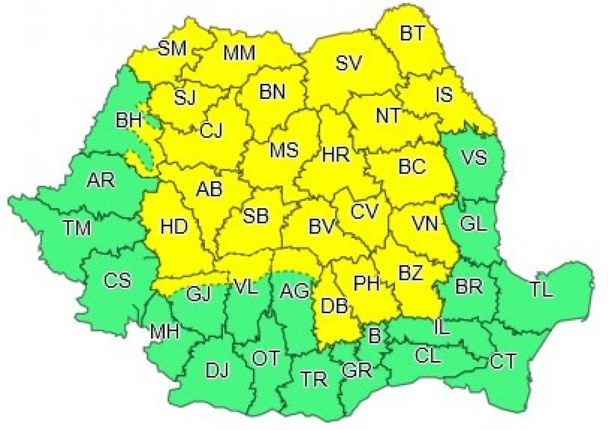 Alerta meteo este valabilă astăzi, până la ora 22.00.