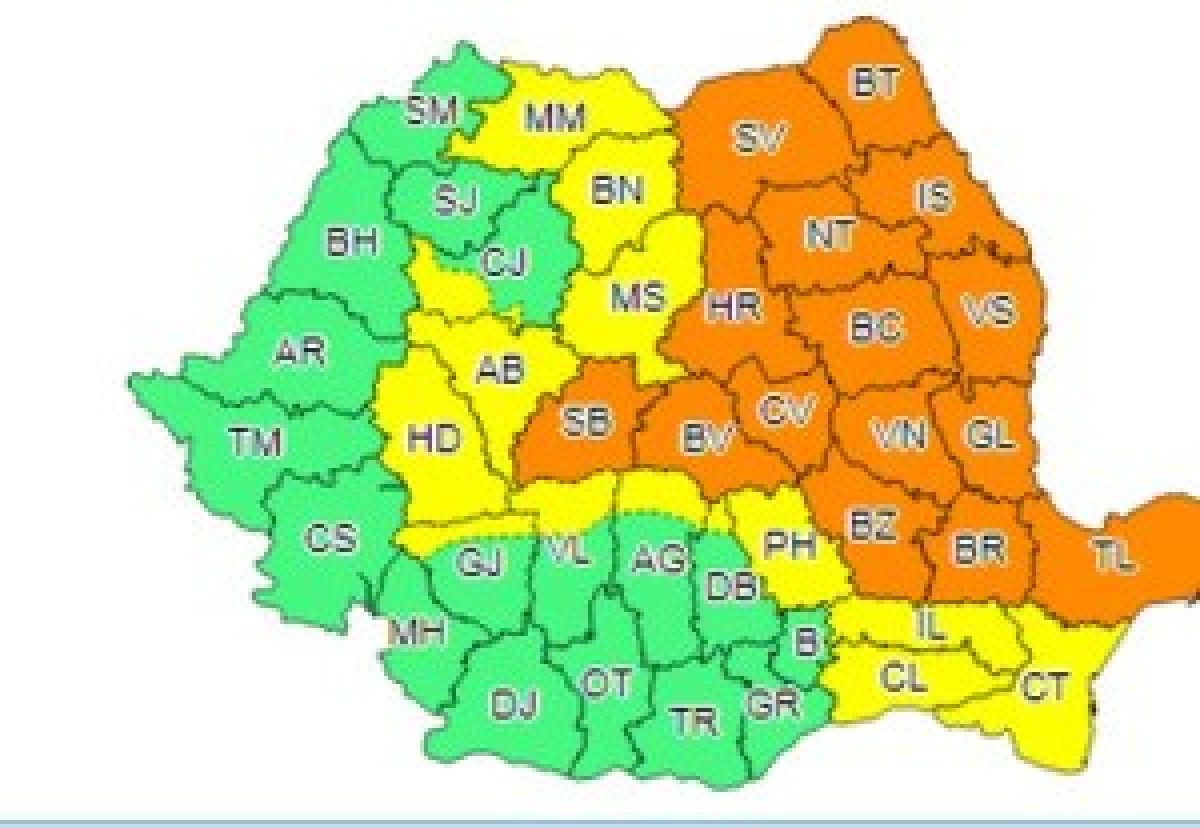 Alerta de Cod Portocaliu este valabilă până diseară, la ora 22:00.