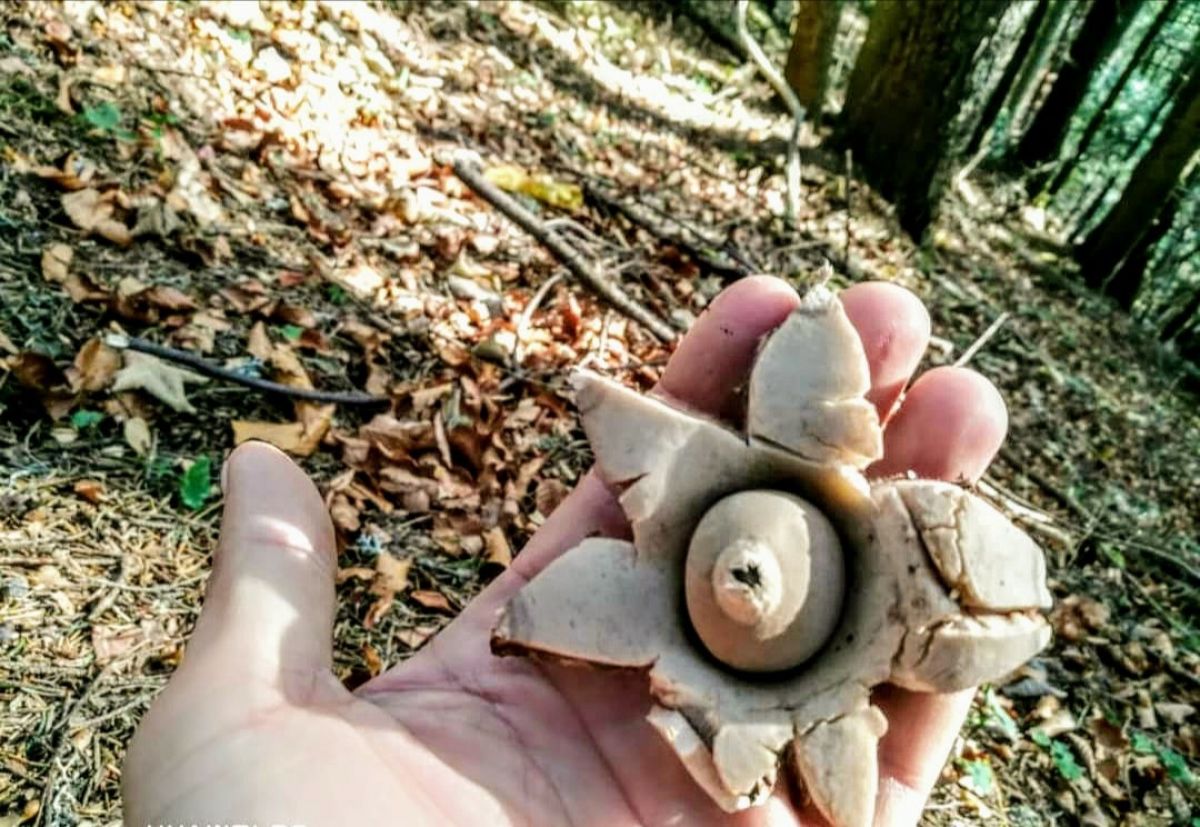 Este vorba despre Steaua Pământului, o ciupercă denumită astfel tocmai pentru că se deschide în formă de stea.
