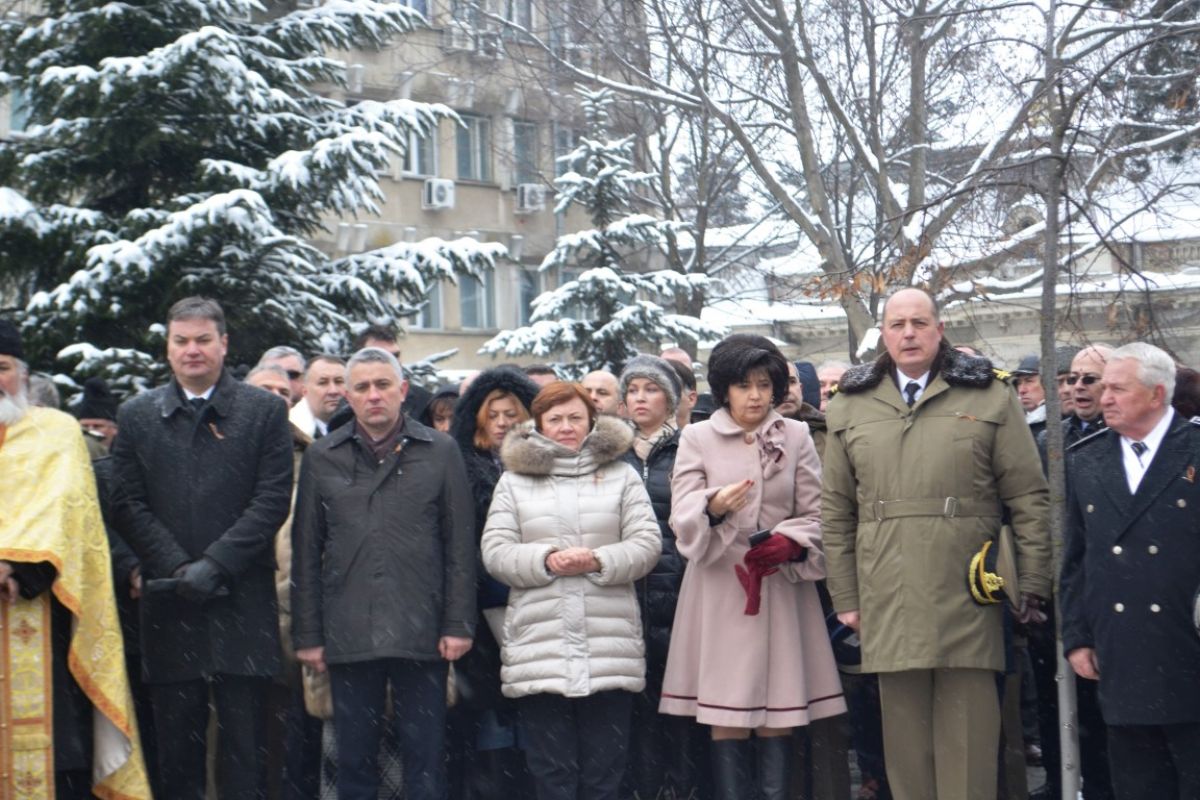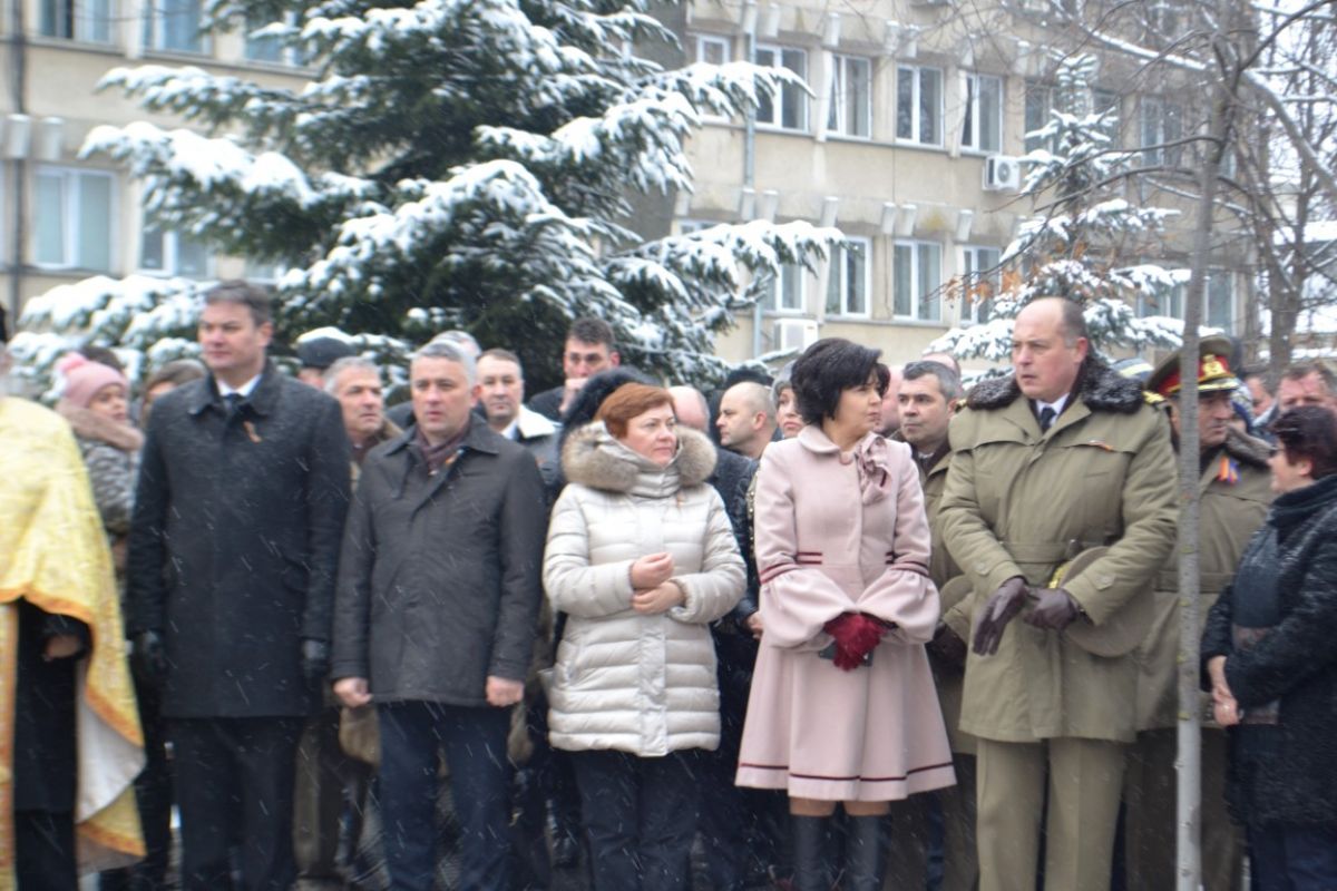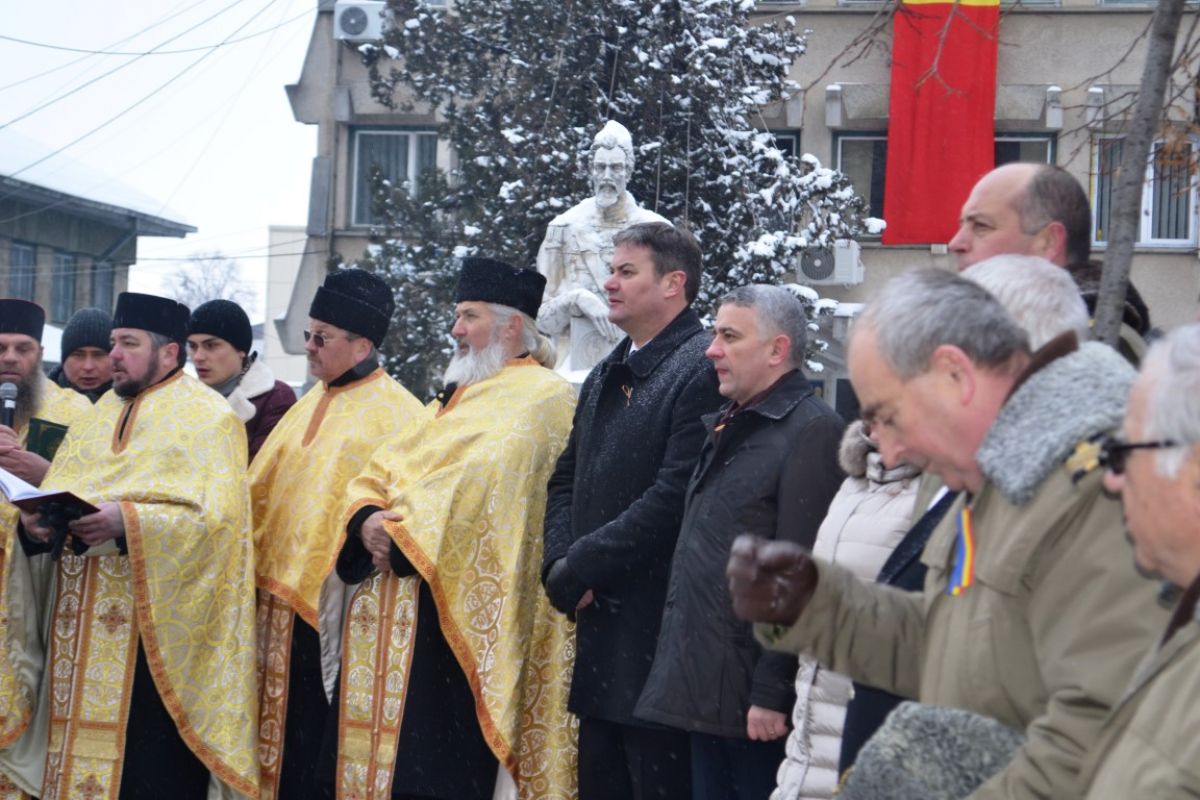 Imediat după, un sobor de preoți în frunte cu protopopul Lucian Leonte a oficiat o scurtă slujbă. Oficialitățile nu au ținut vreun discurs, în schimb istoricul Sergiu Balanovici a adresat câteva cuvinte despre importanța acestei zile în istoria neamului.