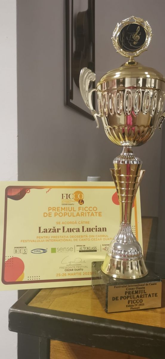 După o preselecție riguroasă și două etape eliminatorii, Luca a cucerit unul dintre premiile competiției- Trofeul de Popularitate FICCO, fiind apreciat pentru calitățile sale vocale deosebite și pentru atitudinea scenică. Acest premiu nu este primul câștigat în 2023 de micul artist, Luca fiind remarcat și la Festivalul Mărțișor Dorohoian, desfășurat la începutul lunii martie, unde a cucerit Premiul I cu melodia ”Au înnebunit salcâmii”.