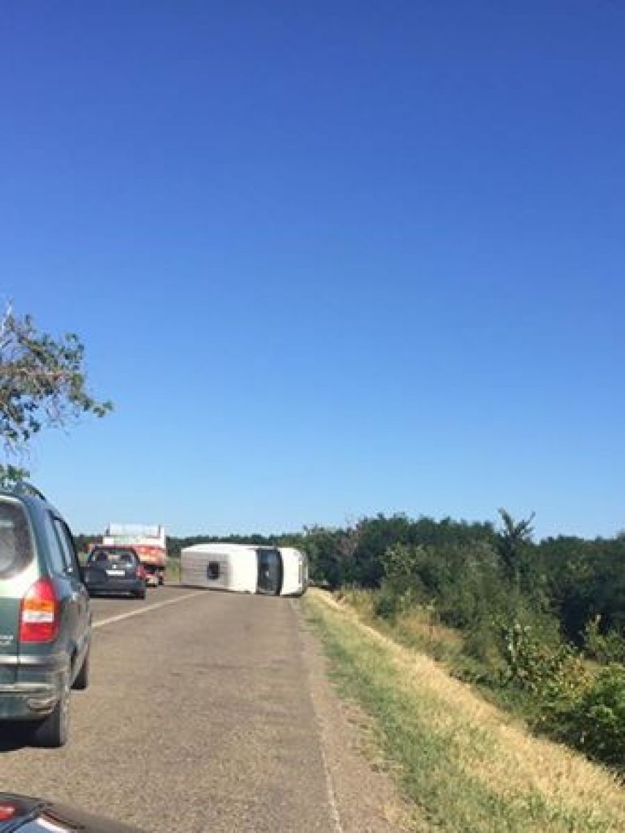 Accident spectaculos petrecut luni pe drumul Botoșani – Tg. Frumos. Un microbuz cu numere de Bacău s-a răsturnat de-a latul șoselei.