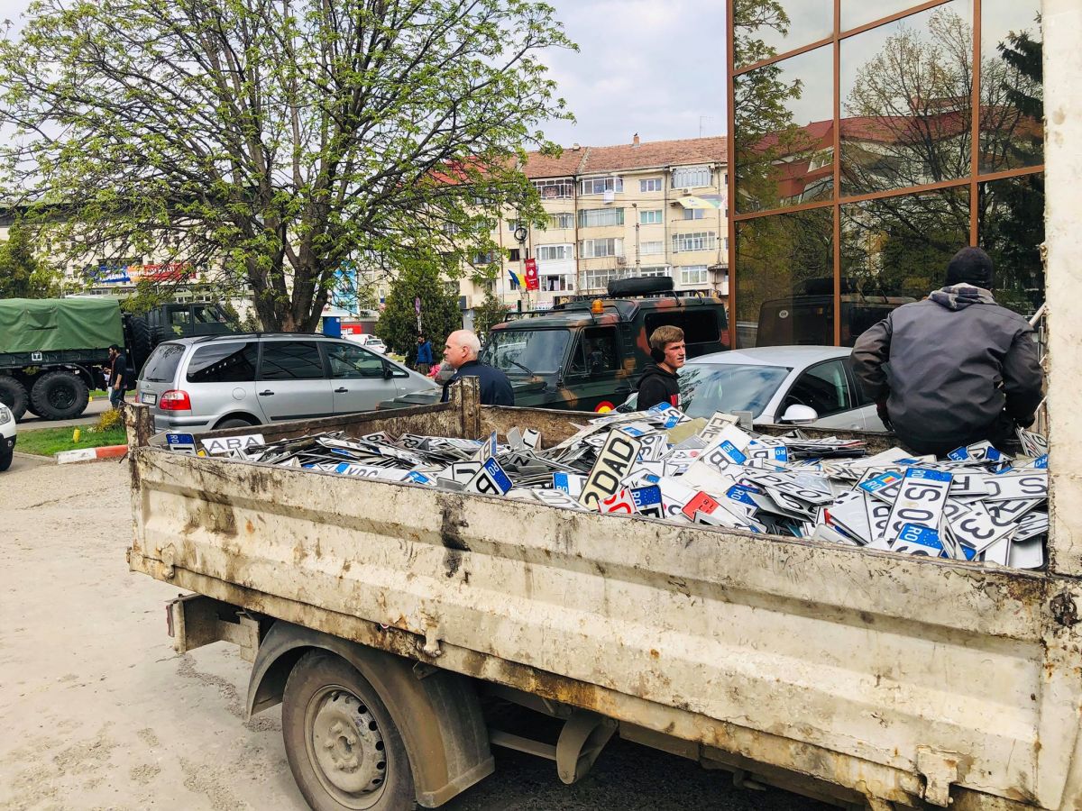 ”Sunt plăcuțe cu numere de înmatriculare recuperate din procesul de transcriere, înmatriculare permanentă și așa mai departe, rezultate fiind aceste deșeuri care se predau la unitatea autorizată, care are contract de achiziții cu Instituția Prefectului.(…)Acestea se distrug,”