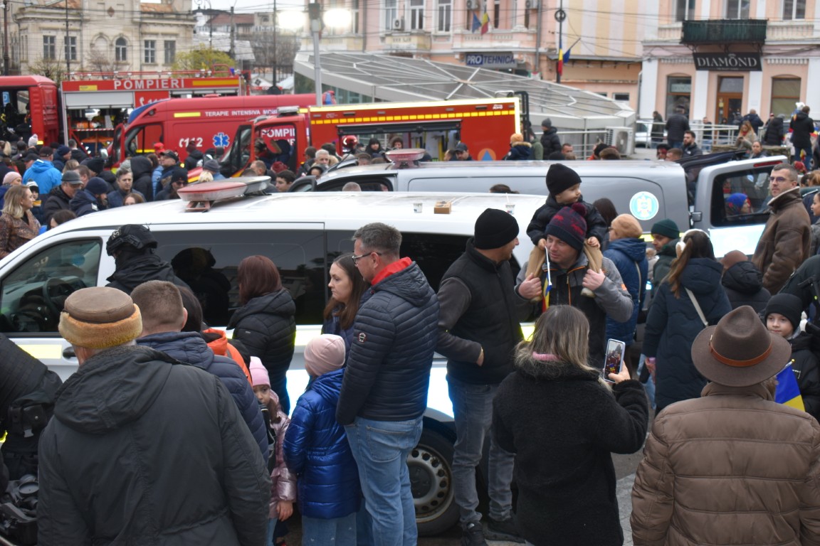 Botoșănenii de toate vârstele au umplut practic parcarea Elvila pentru a se bucura de această prezentare a tehnicii militare aflată în dotarea structurilor din subordinea MAI.