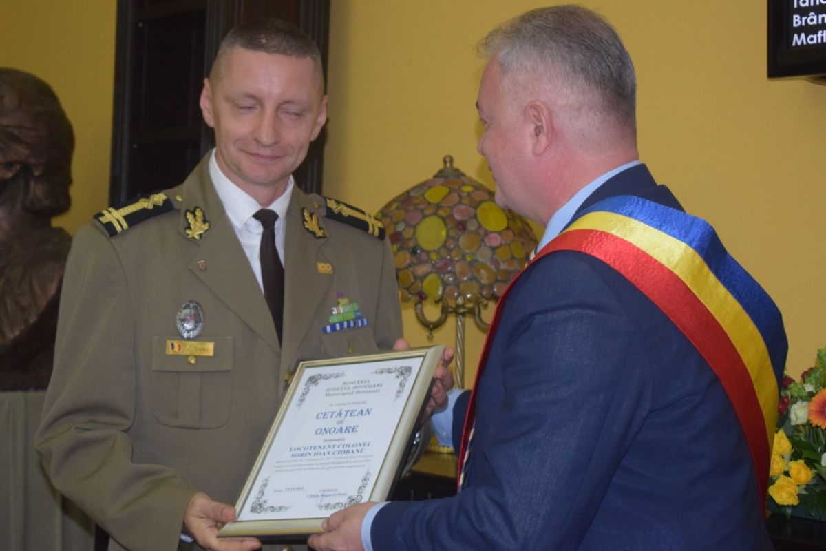 Al doilea dar nu cel din urmă militar care a primit miercuri titlul de cetățean de onoare al municipiului Botoșani, într-o atmosferă festivă, a fost lt. col. Sorin Ioan Ciobanu.