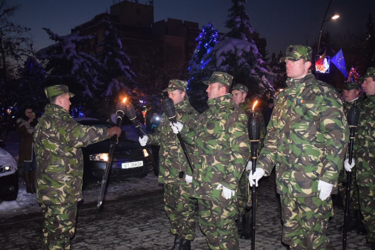 La Botoșani n-a huiduit nimeni. Dimpotrivă, botoșănenii au sfidat gerul și au admirat militarii care s-au retras încolonați, cu torțe în mâini. Nu singuri ci însoțiți de Orchestra Militară a Brigăzii I – Infanterie Motorizată din Bălți, Republica Moldova.