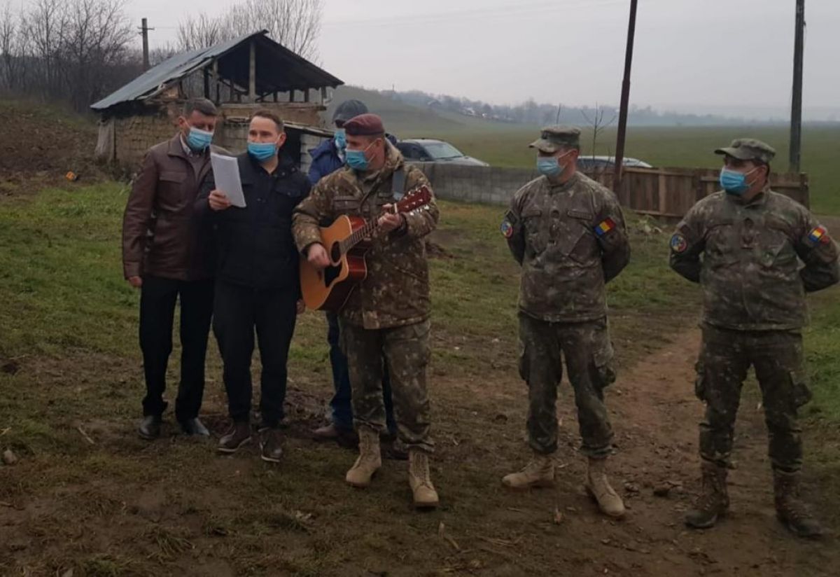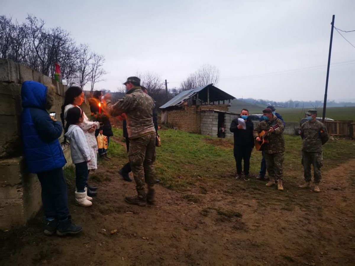 Membrii Asociației Militarilor Veterani și Veterani cu Dizabilități (AMVVD) - Sucursala Botoșani au colindat ieri o familie cu șase copii din Cristești.