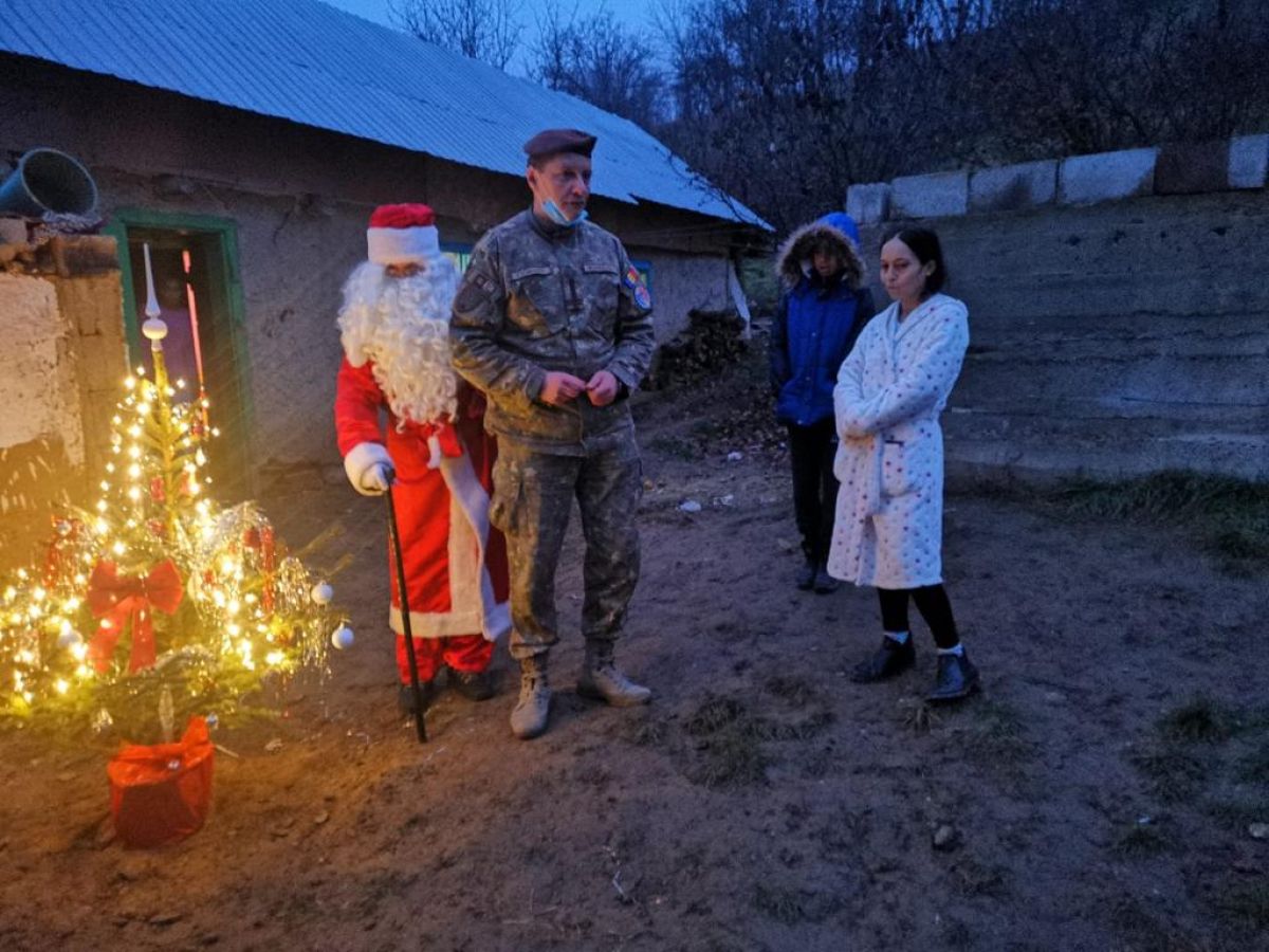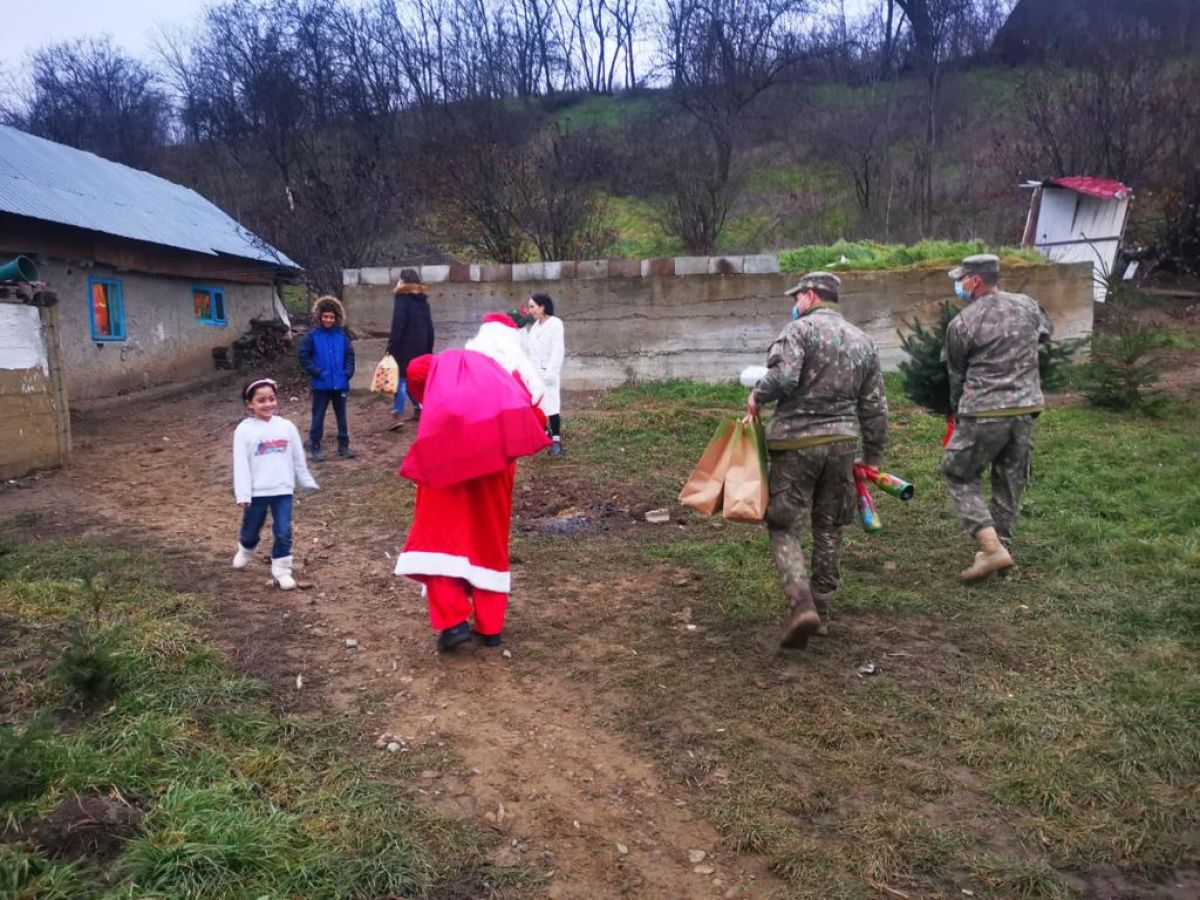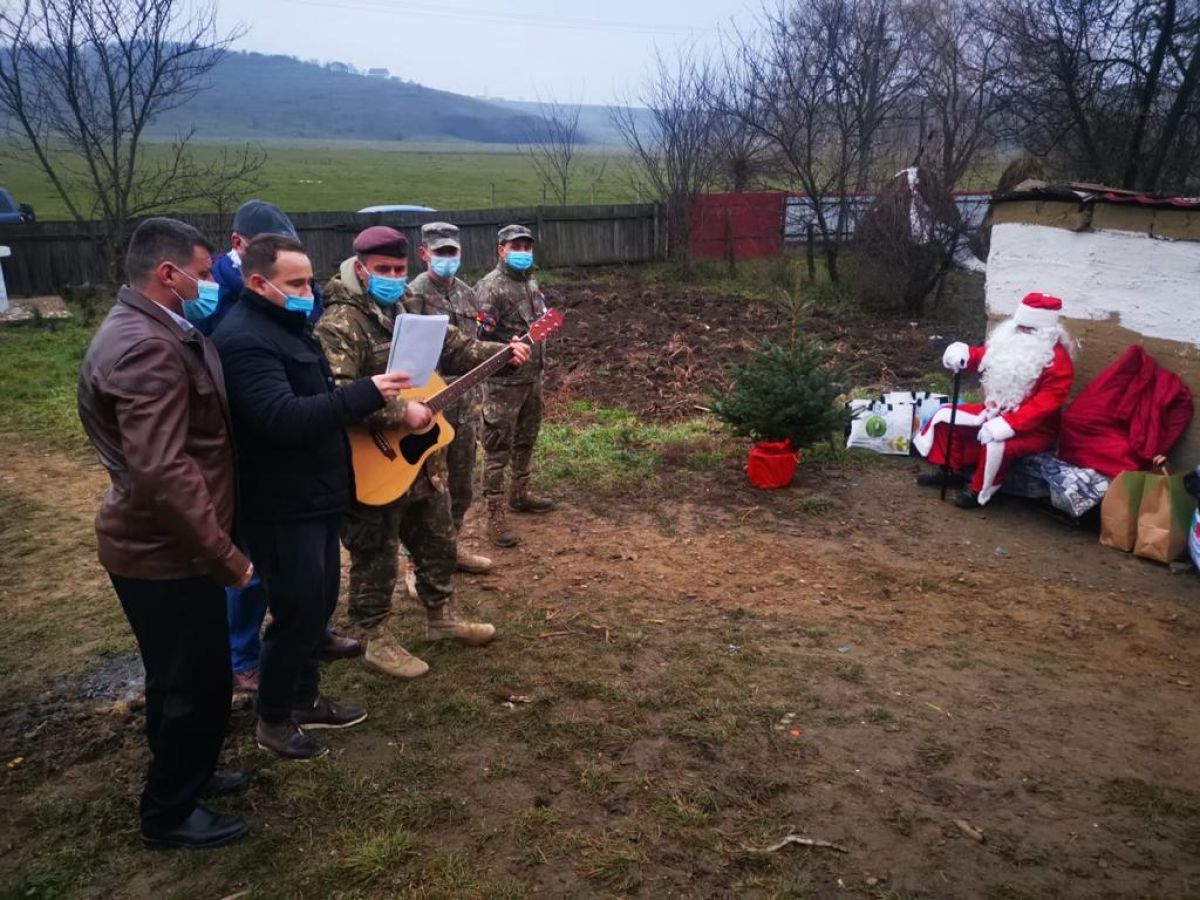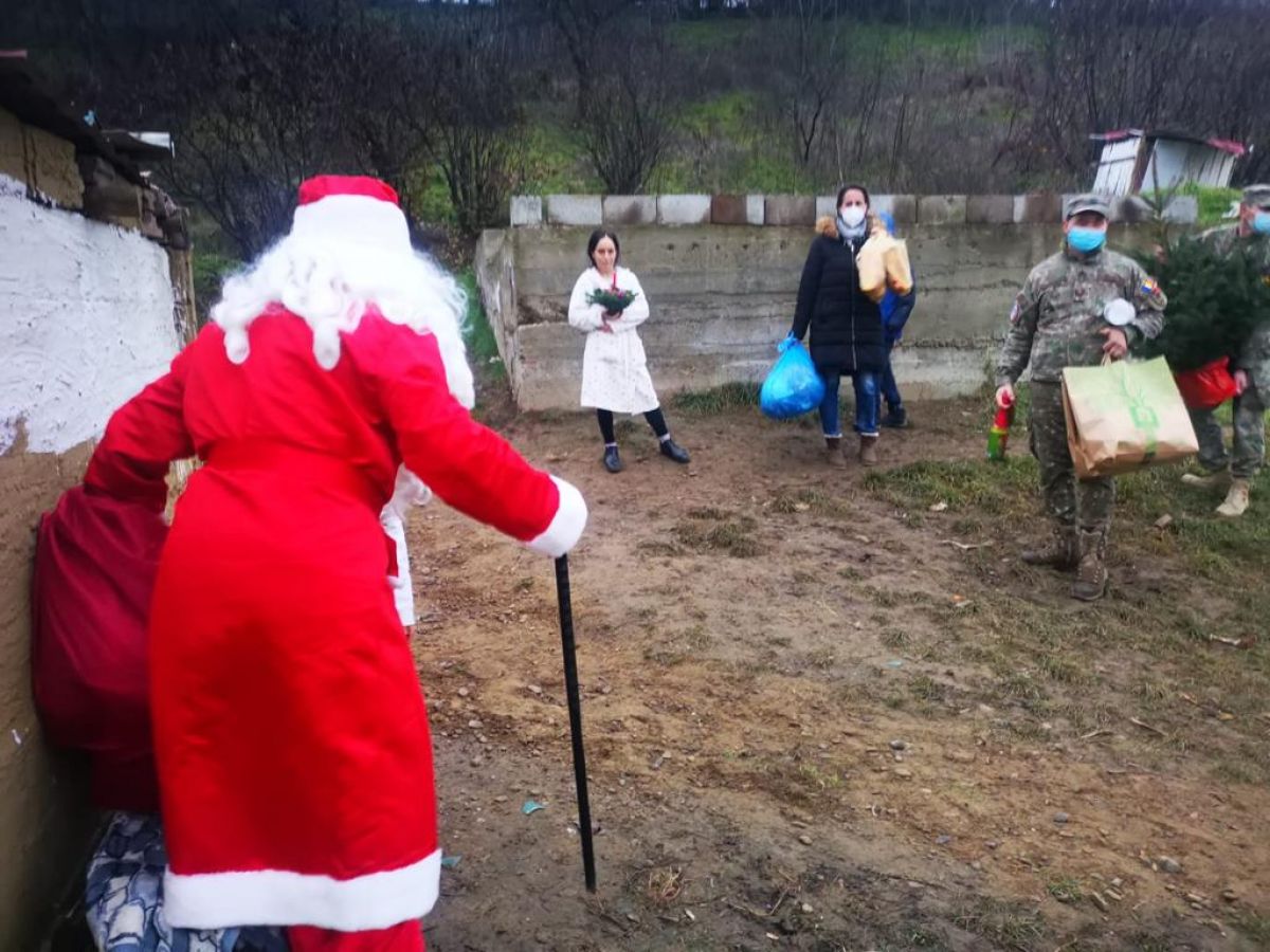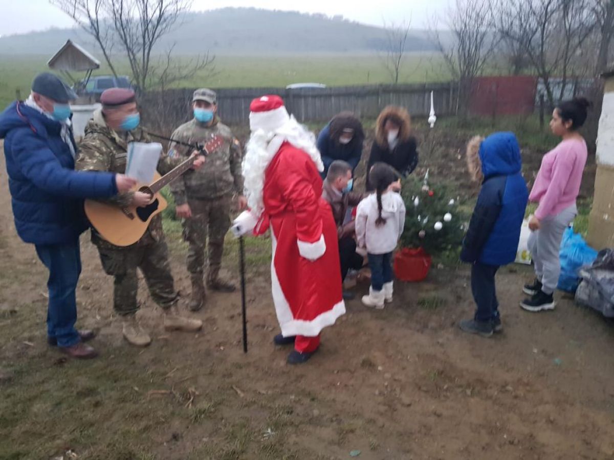 Militarii botoșăneni nu s-au oprit aici cu surprizele, invitându-l și pe Moș Crăciun să ia parte la acest eveniment. Moșul, după ce a ascultat răbdător poeziile recitate cu emoții, le-a dăruit copiilor jucării și dulciuri și le-a transmis să fie la fel de cuminți și să-și asculte mama, promițându-le că și anul viitor le va oferi cadourile dorite. La final, cu toții au ciocnit câte un pahar de șampanie, special adusă pentru copii.