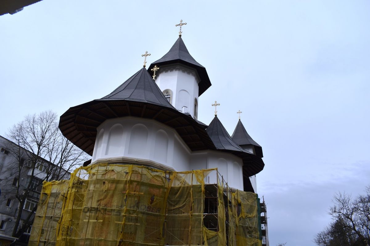 În 2001 au început slujbele la demisolul bisericii mari, iar la plecarea părintelui la Arhiepiscopia Iașilor, acolo unde este vicar administrativ, construcția era ridicată până în apropierea centurii finale, deasupra nivelului cafasului. S-a executat și un acoperiș provizoriu până la procurarea unor noi fonduri pentru continuarea lucrărilor.