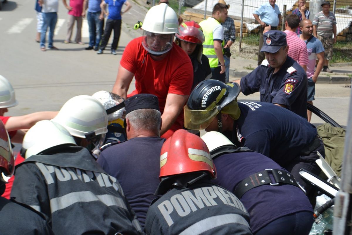 A fost exact partea în care stătea tânărul rămas încarcerat. Pompierii și echipajul de pe ambulanță s-au luptat aproximativ 20 de minute pentru a-l putea scoate în mașină. Au desprins în primă fază cupola autoturismului iar mai apoi bucăți din caroserie ca să poată să-l extragă pe bărbat.