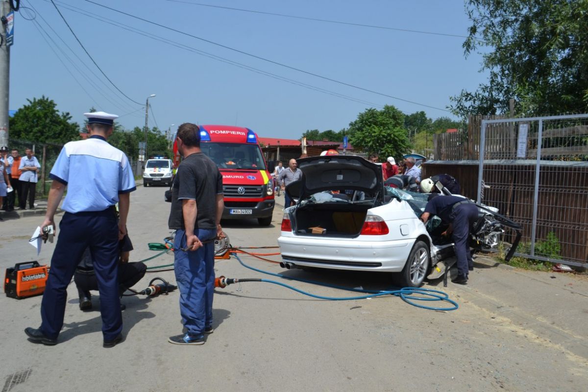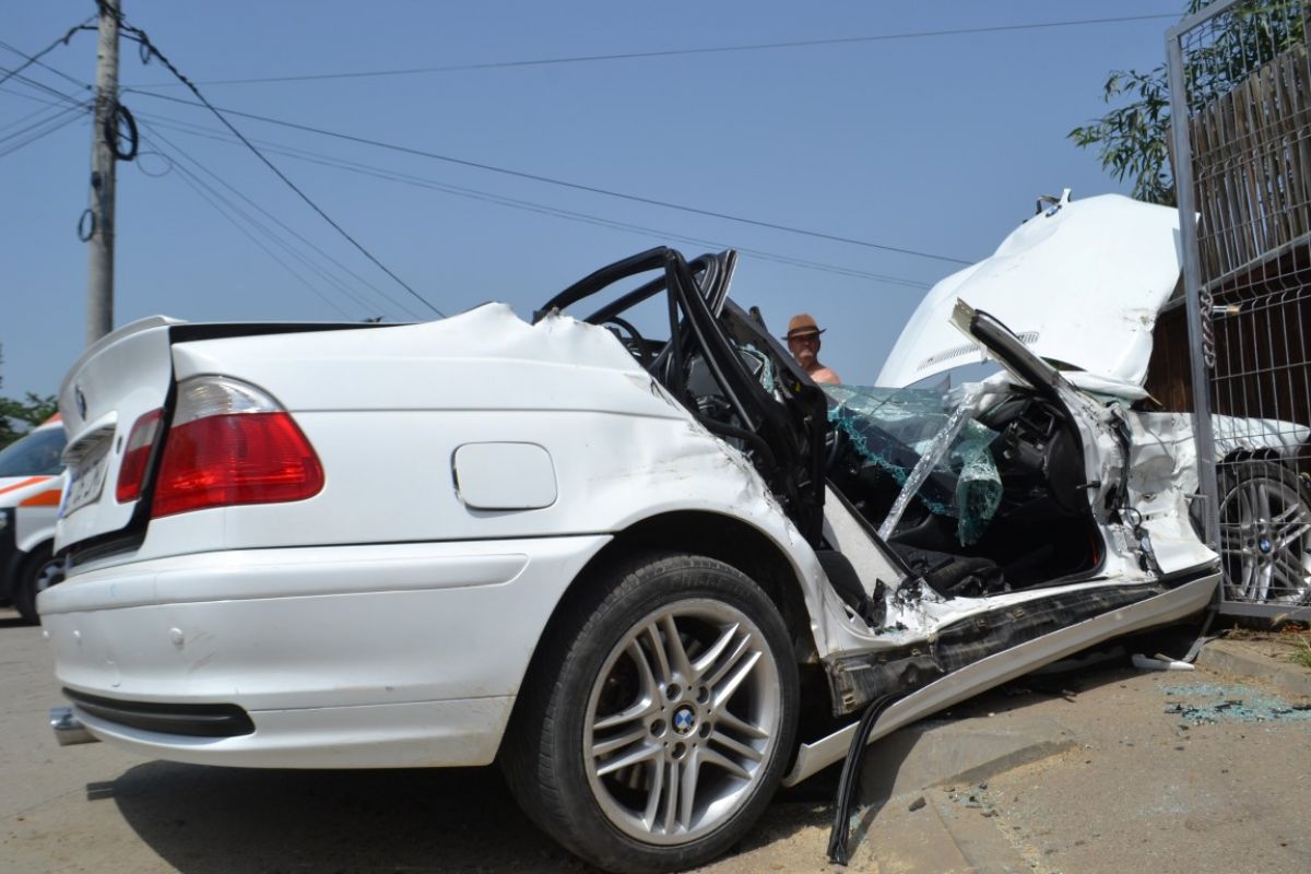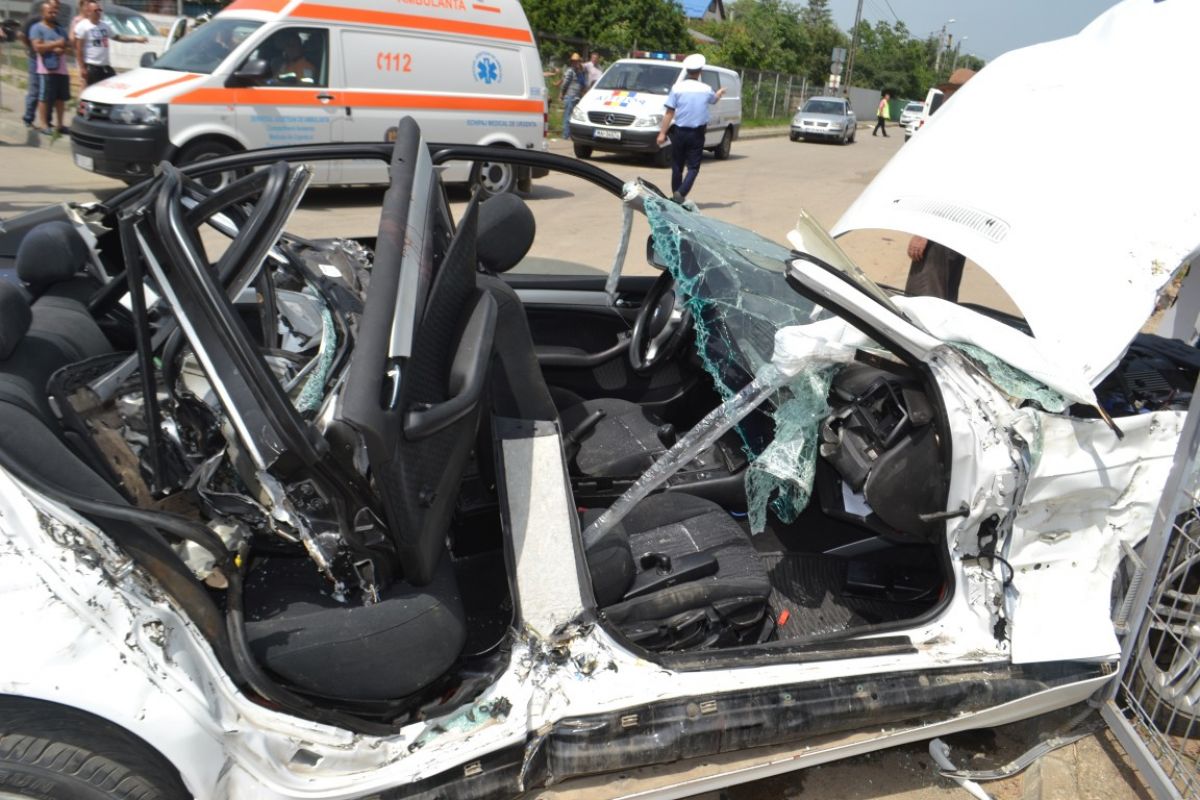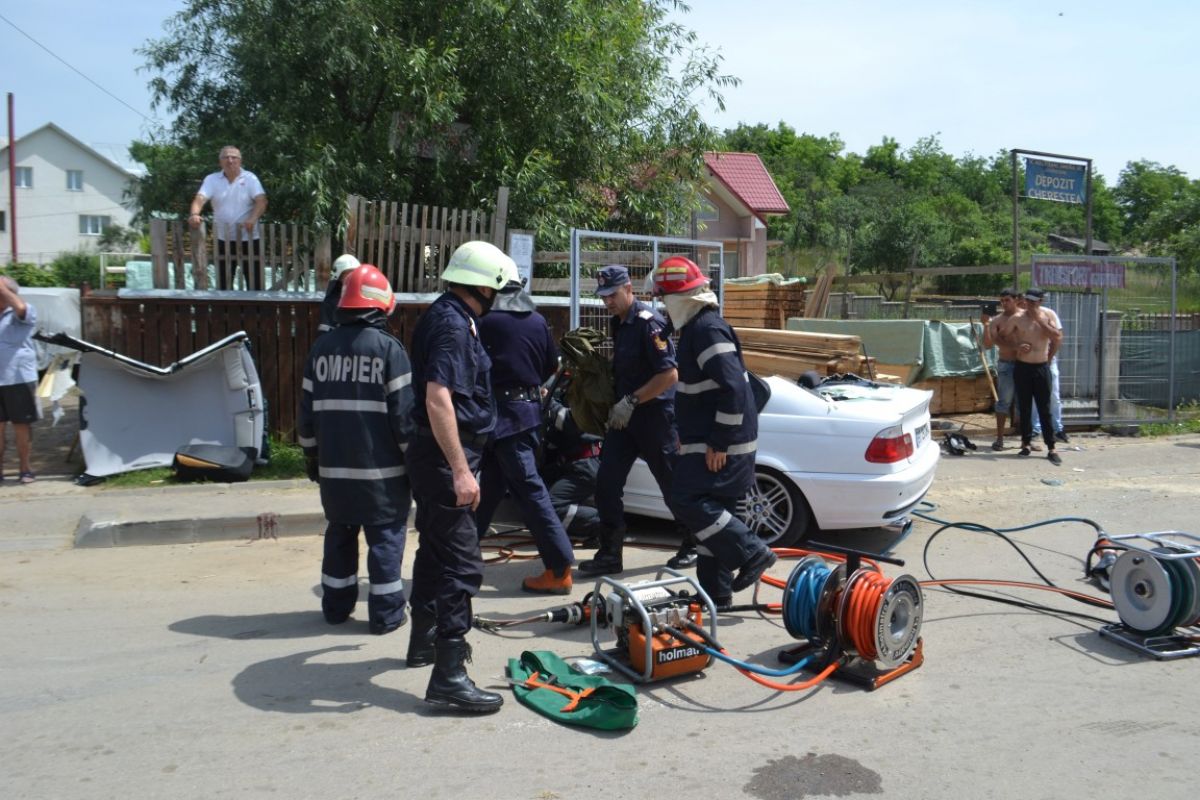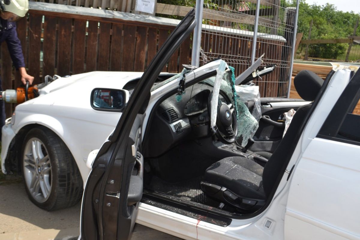 Băiatul care se afla la volan și care avea în jur de 30 de ani le-ar fi spus polițiștilor că ar fi încercat să evite un autoturism care ieșea dintr-o curte. A tras de volan, din cauza vitezei BMW-ul să-a răsucit și cu partea laterală a lovit autoutilitara Mercedes care încărca cherestea.
