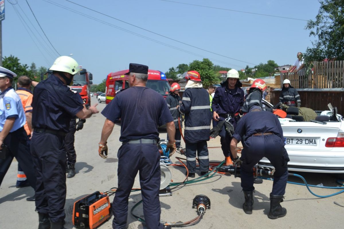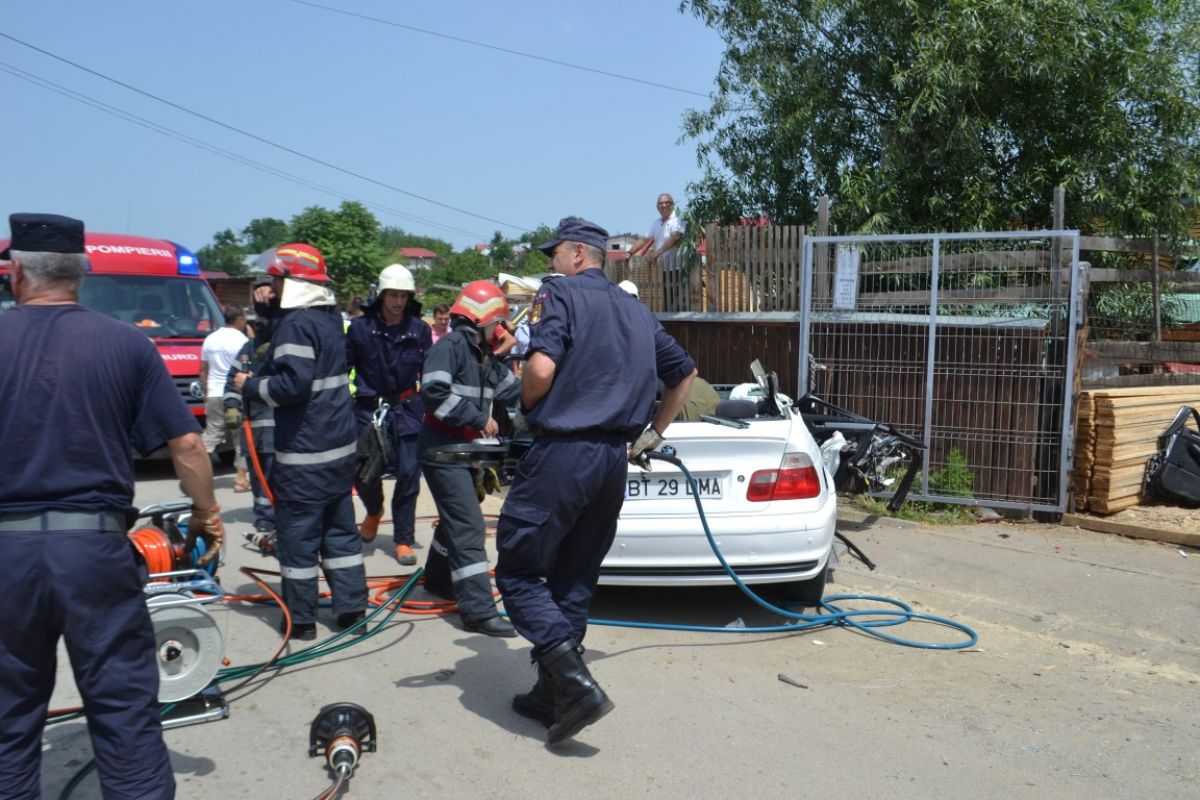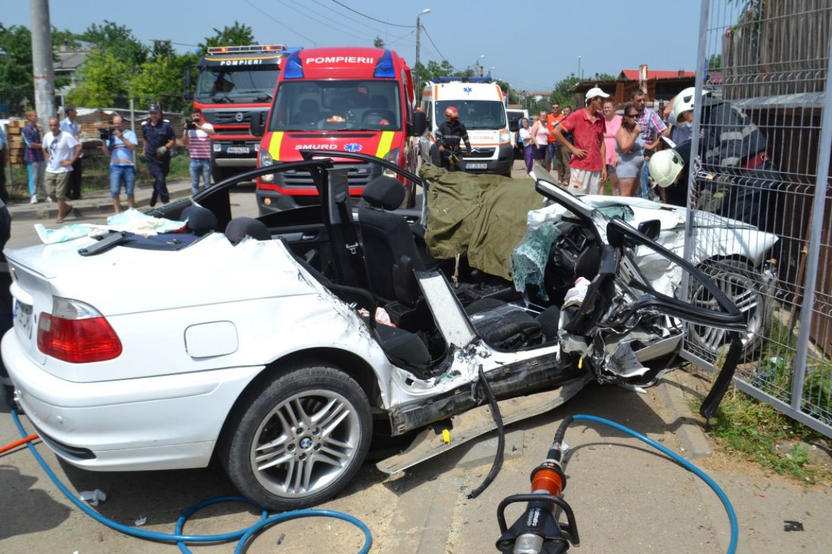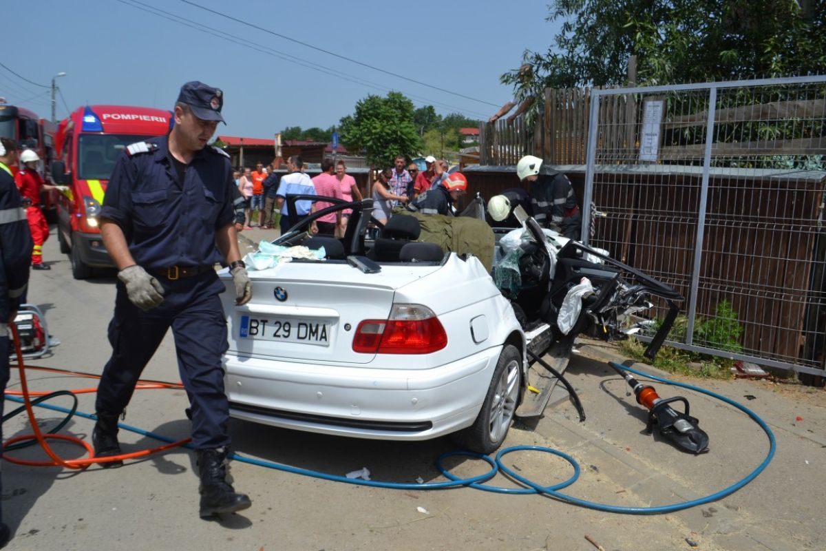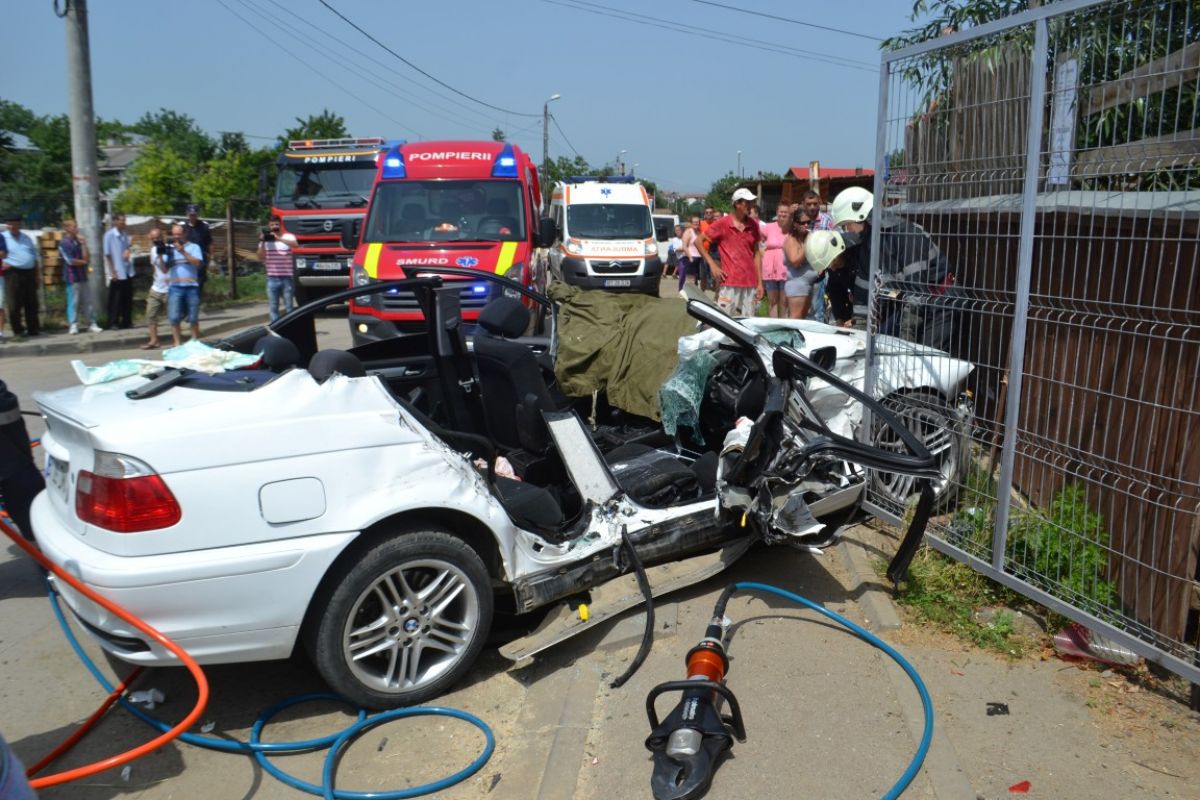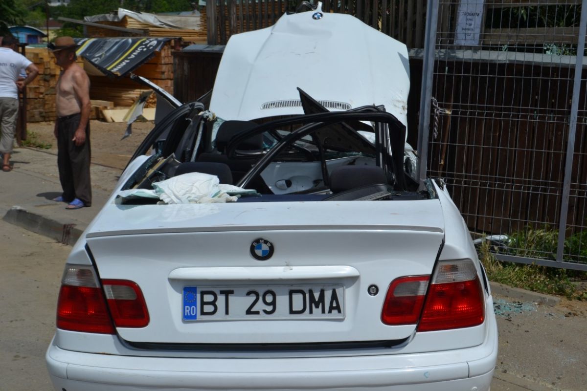 Băiatul care se afla la volan și care avea în jur de 30 de ani le-ar fi spus polițiștilor că ar fi încercat să evite un autoturism care ieșea dintr-o curte. A tras de volan, din cauza vitezei BMW-ul să-a răsucit și cu partea laterală a lovit autoutilitara Mercedes care încărca cherestea.