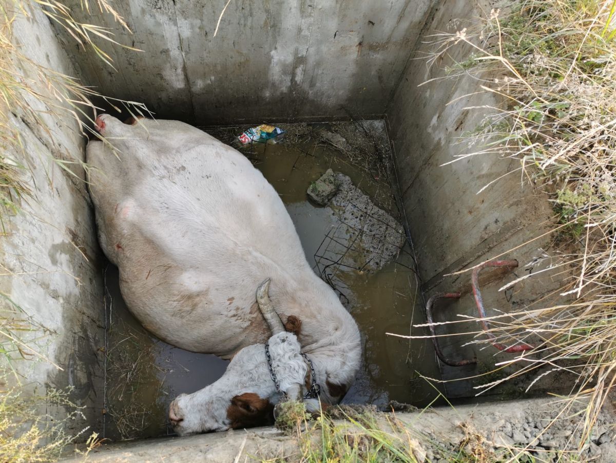 Animalul a căzut în groapa adâncă de cca. doi metri după ce capacul care o acoperea a cedat. Localnicii au încercat să îl ajute pe proprietar să o scoată din captivitate, dar eforturile lor au fost zadarnice.