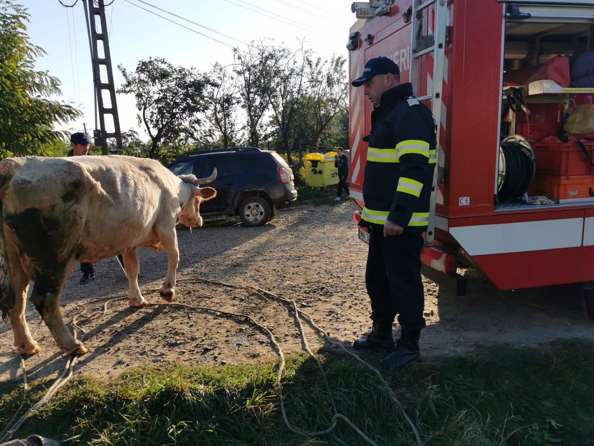 Au legat bovina cu mai multe furtunuri şi cu ajutorul unui buldoexcavator, pus la dispoziție de Primăria Trușești, au reuşit să o aducă la suprafaţă. Aceasta nu a fost rănită.