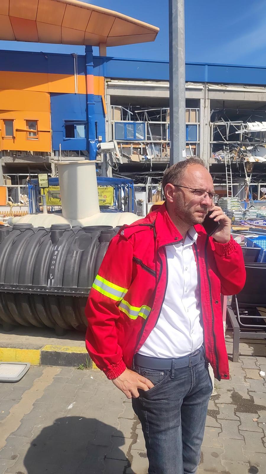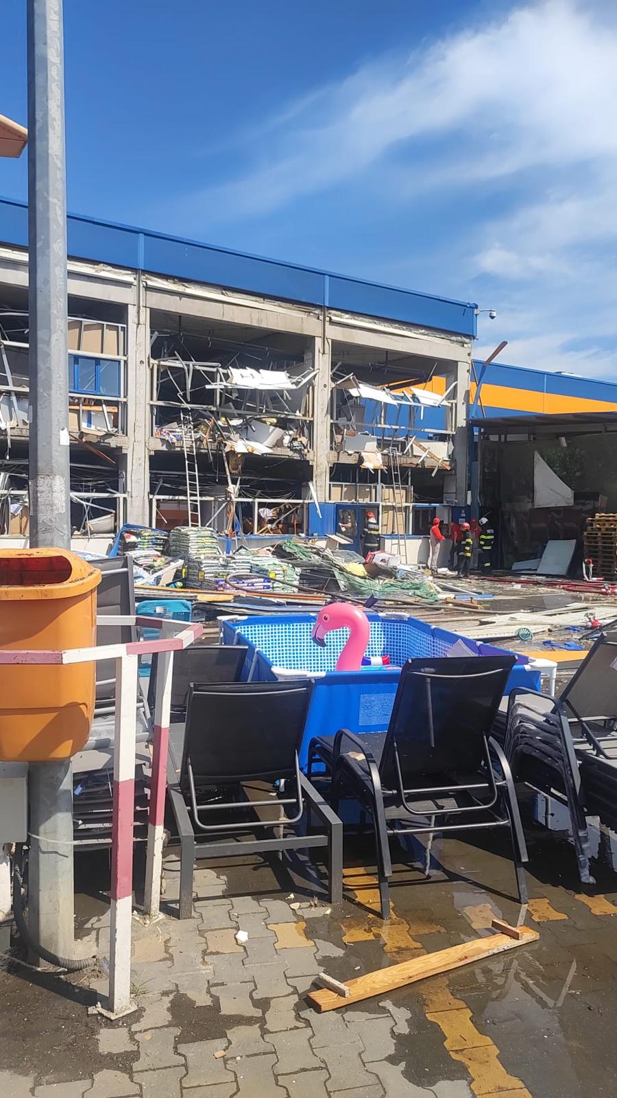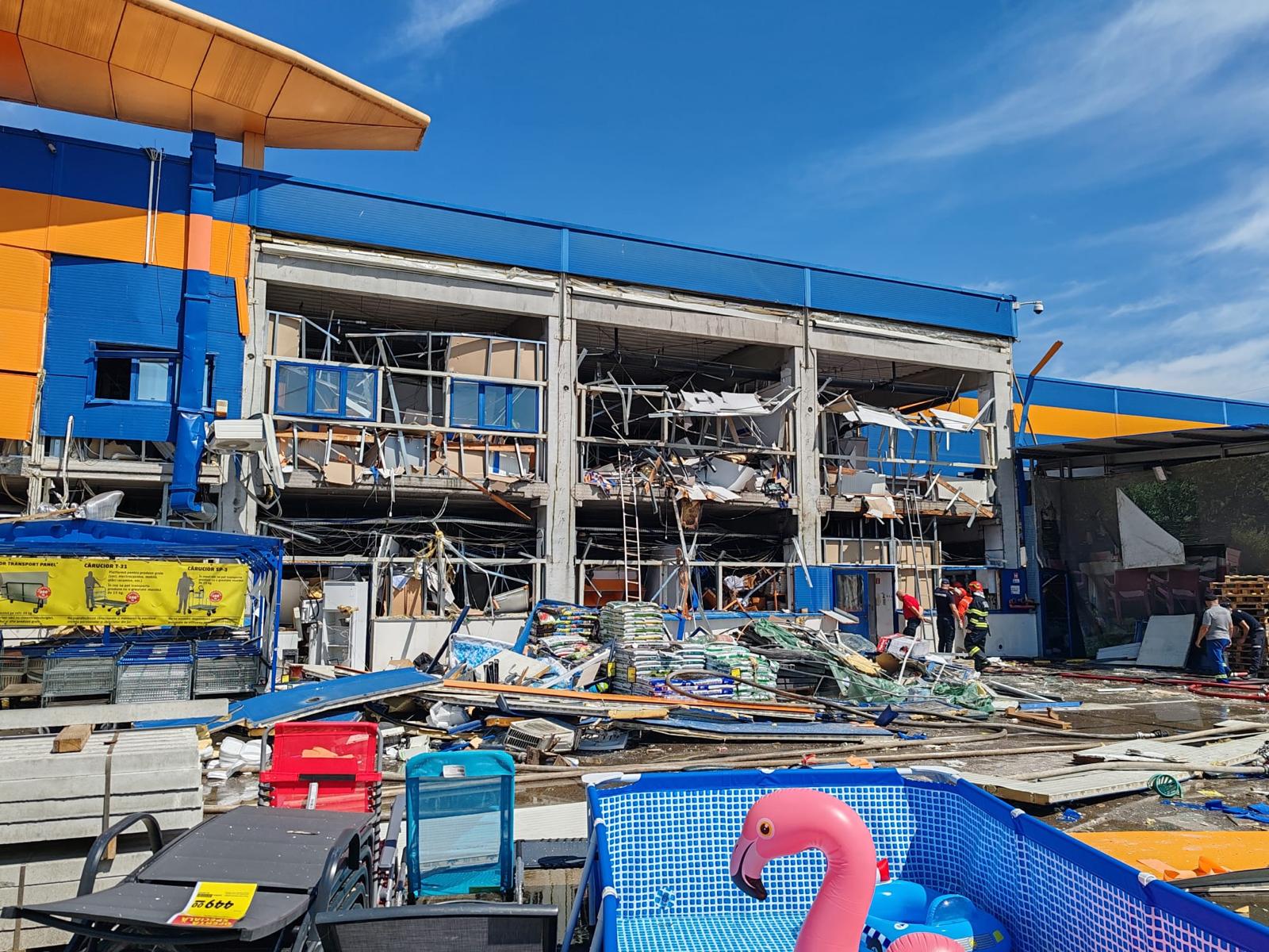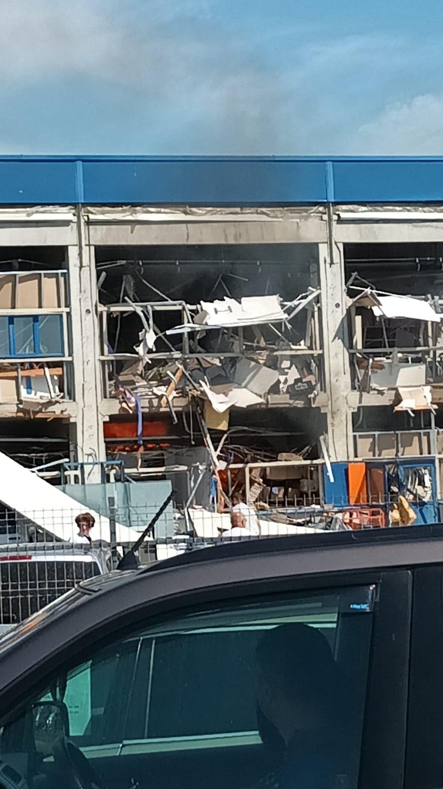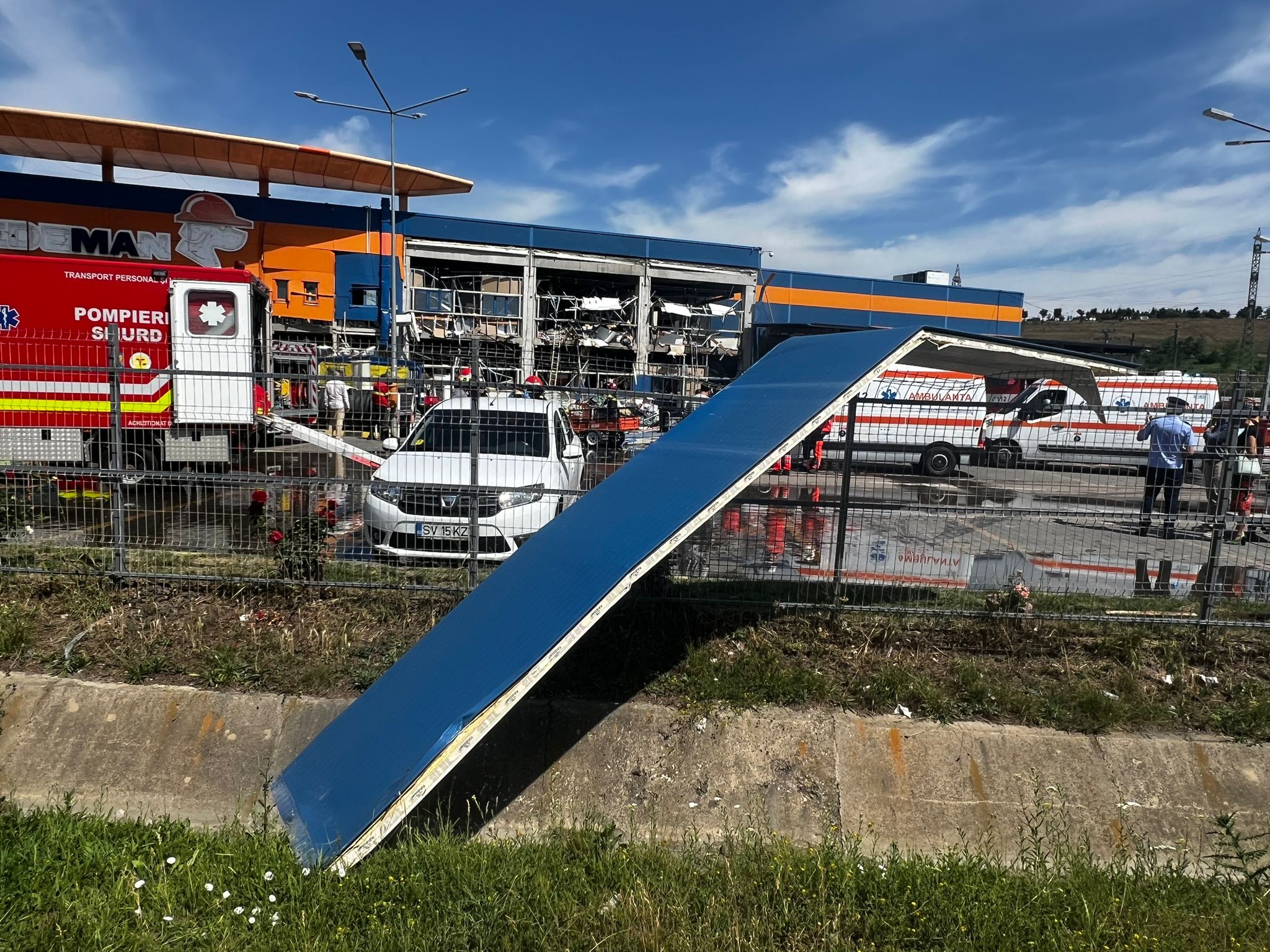 La acest moment, în parcarea complexului Dedeman încă se încearcă limitarea dezastrului produs de explozia care a avut loc în această dimineață.