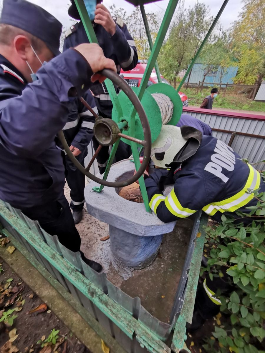 Intervenția a fost una extrem de dificilă având în vedere faptul ca fântâna era foarte îngustă, având diametrul de circa 40 cm.
