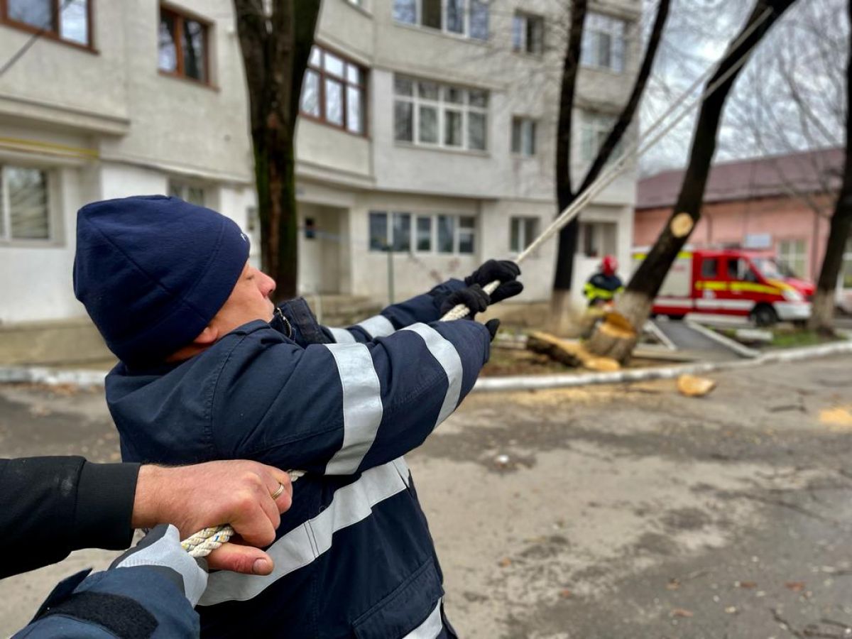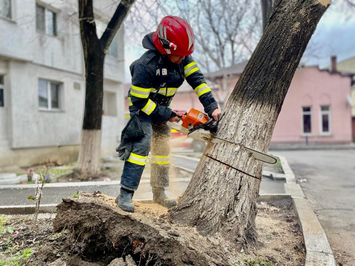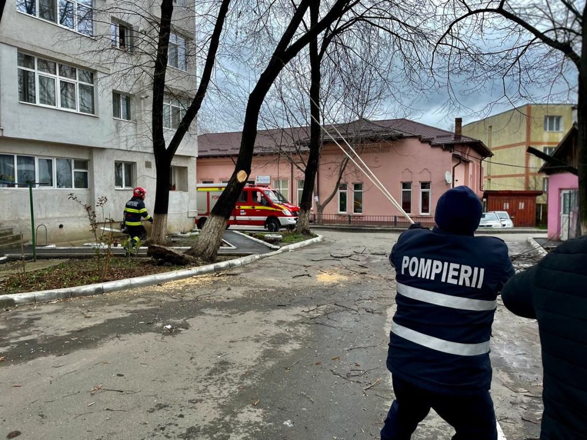Un echipaj din cadrul Detașamentului de Pompieri Botoșani a intervenit cu o autospecială de stingere, dotată cu accesorii specifice pentru tăierea copacului, și au înlăturat pericolul.