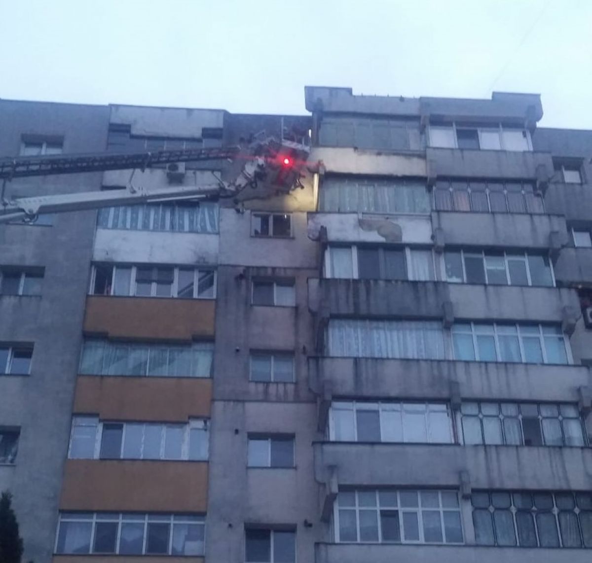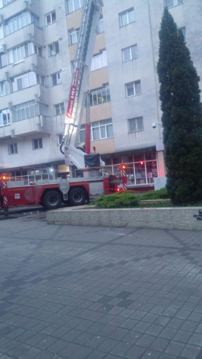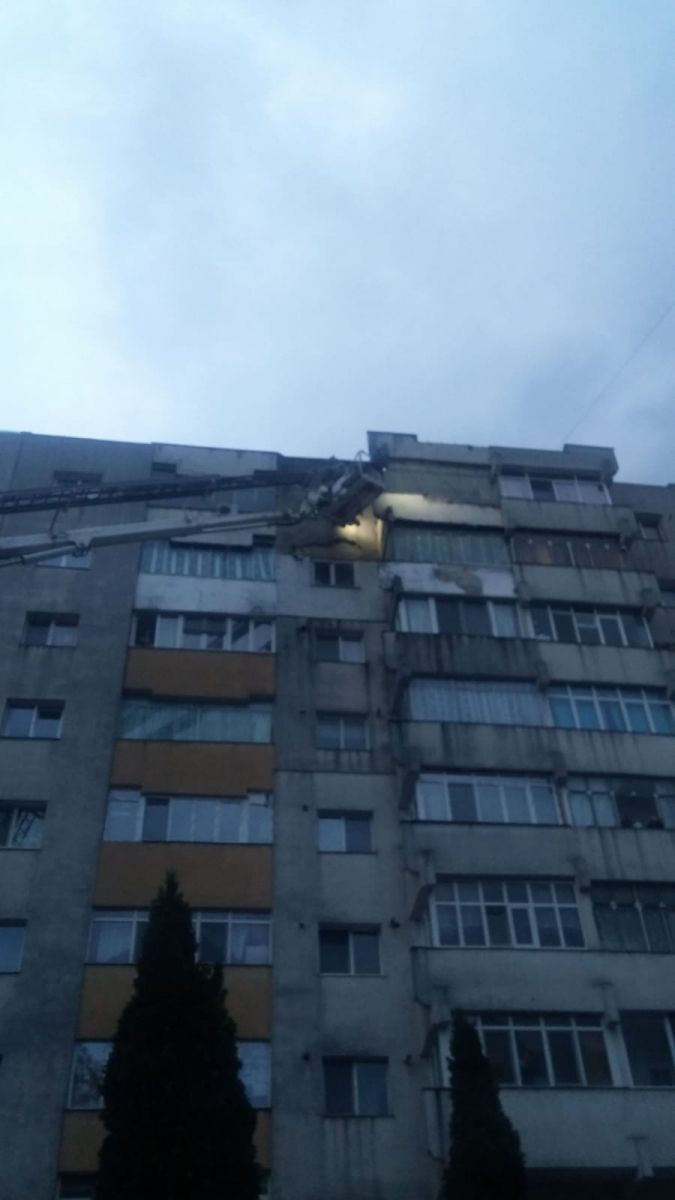 Pompierii din Botoșani au intervenit, joi seara, pentru înlăturarea elementelor de construcție de pe fațada unui bloc din Piața Revoluției.