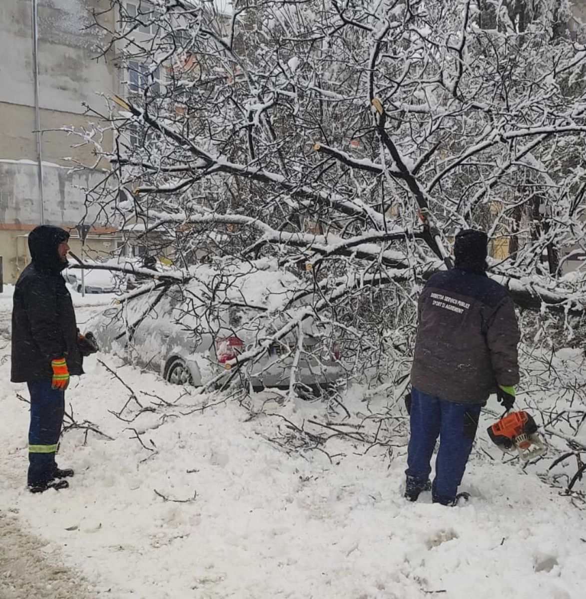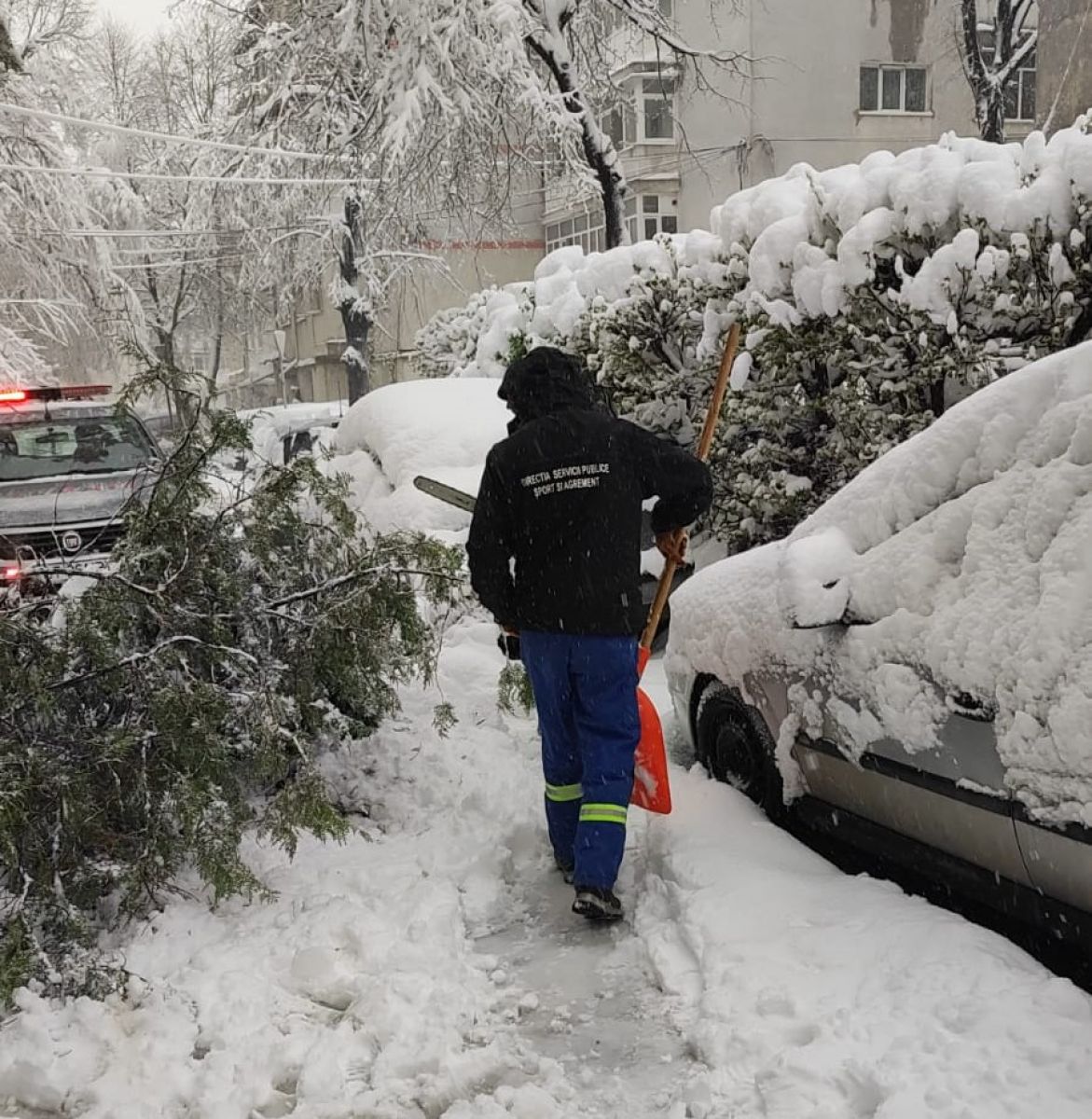 Au fost solicitați pentru arbori care au cedat din cauza greutății zăpezii. S-a intervenit în zone pentru Gheorghe Avrămescu, Grivița sau George Enescu.