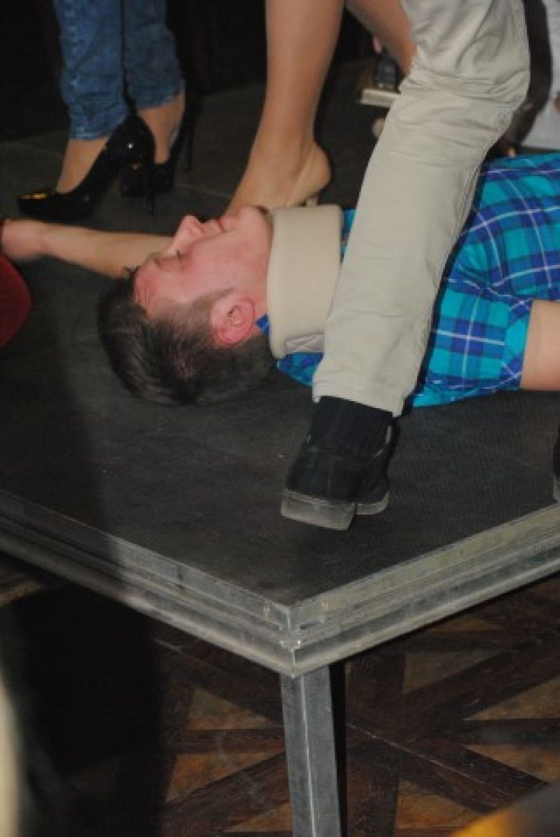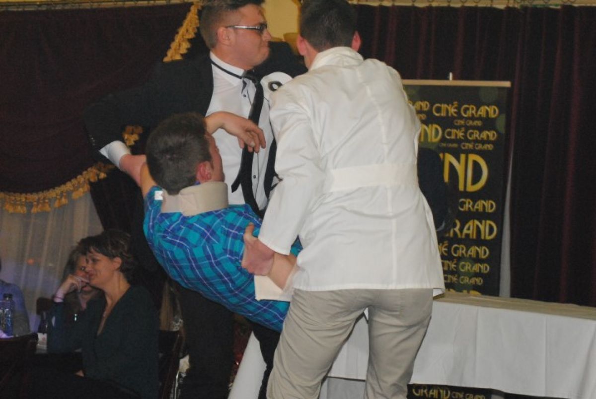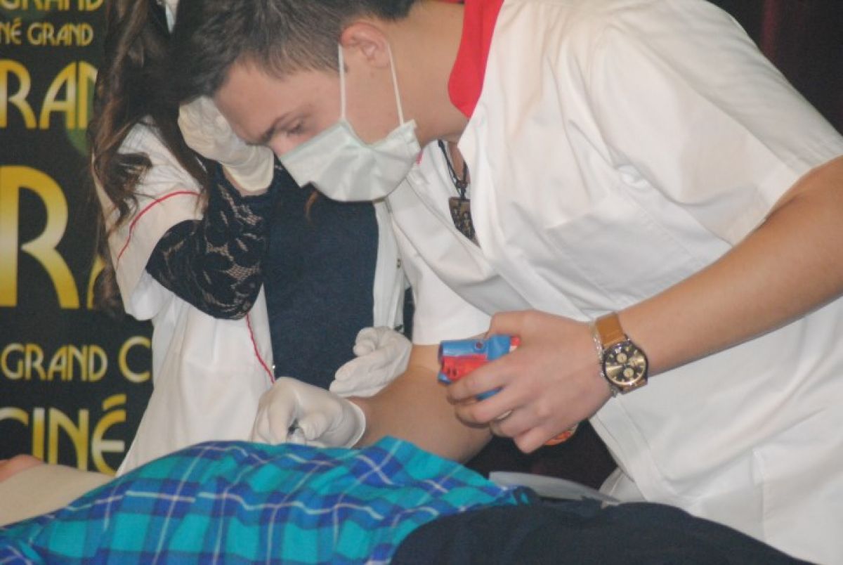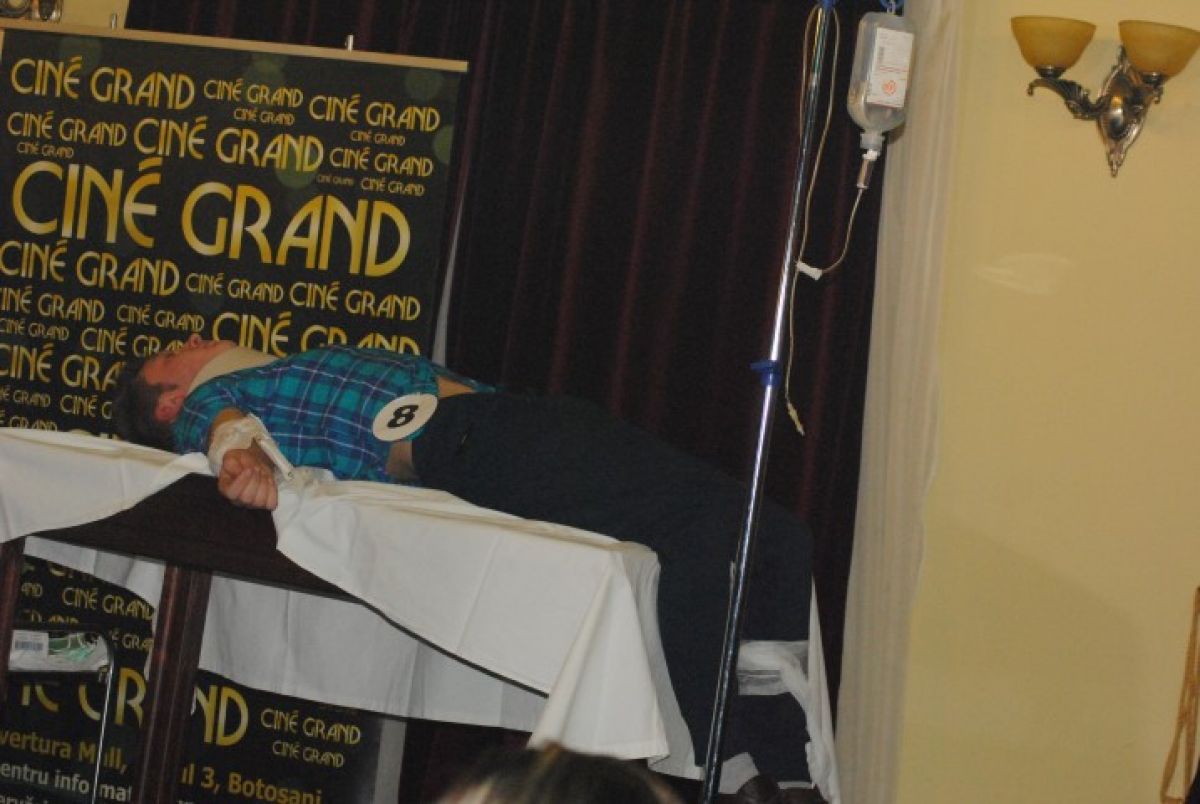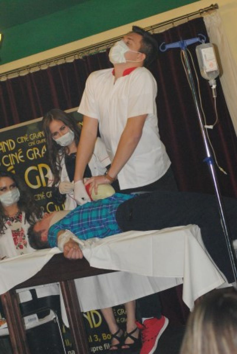 La scurt timp, două asistente, însoțite de un mecanic, l-au resuscitat pe șoferul căzut lat, după care l-au mutat pe o masă, acolo unde au urmat o serie de intervenții chirurgicale, în urma cărora, așa-zisului pacient i s-a pus o inimă nouă. La finalul scenetei, mama tânărului aflat pe patul de spital, îi bagă medicului în buzunarul de la halat o ”atenție”, în semn de... mulțumire că i-a readus fiul la viață. De asemenea, tot la categoria moment artistic, cei 10 concurenți au urcat pe scenă, au dansat în cuplu și și-au făcut declarații siropoase de dragoste, în termeni medicali.