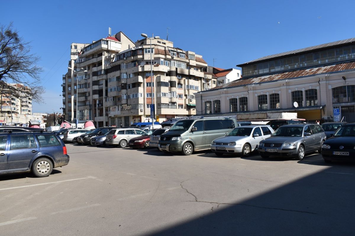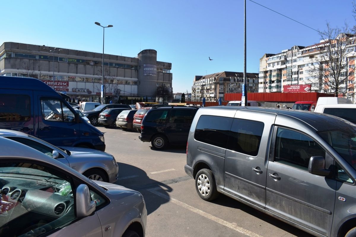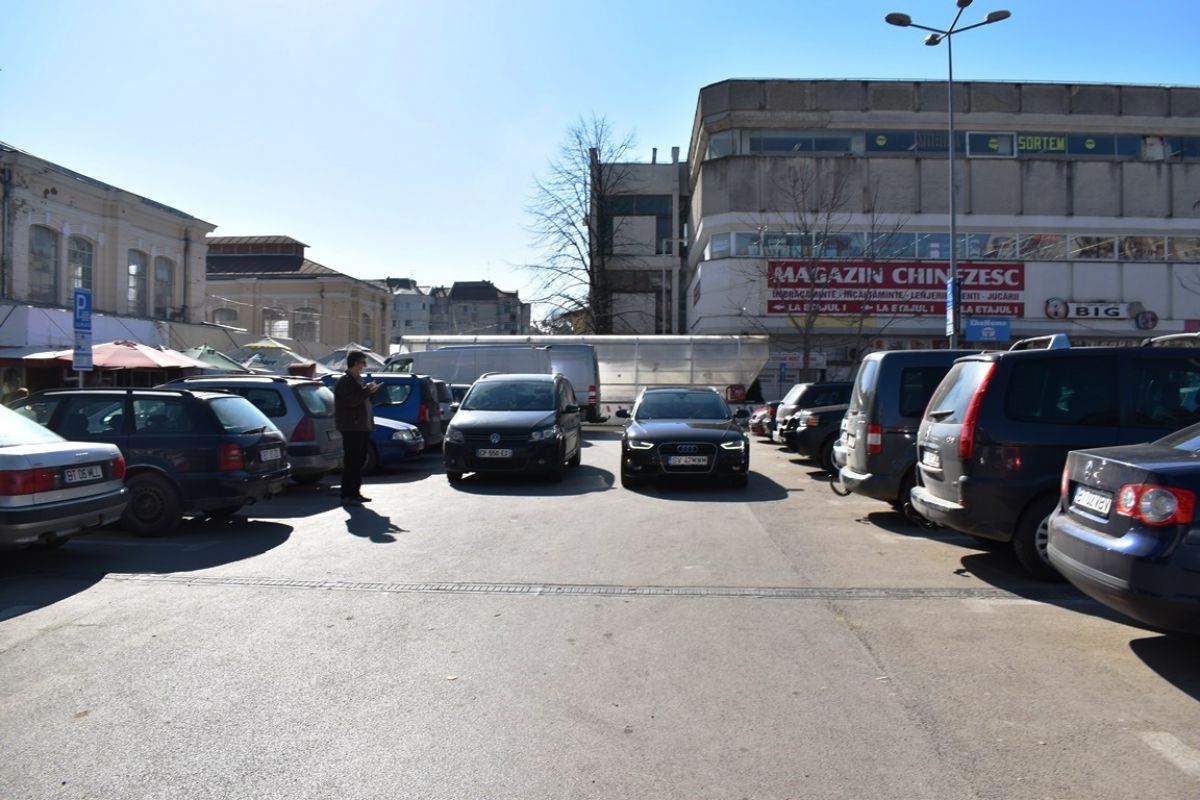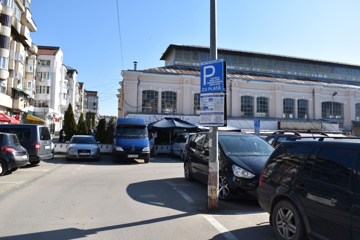 Parcarea era plină, însă cu autoturismele oamenilo veniți la cumpărături, mulți dintre ei particpând inaugurarea pieței volante de produse tradiționale.