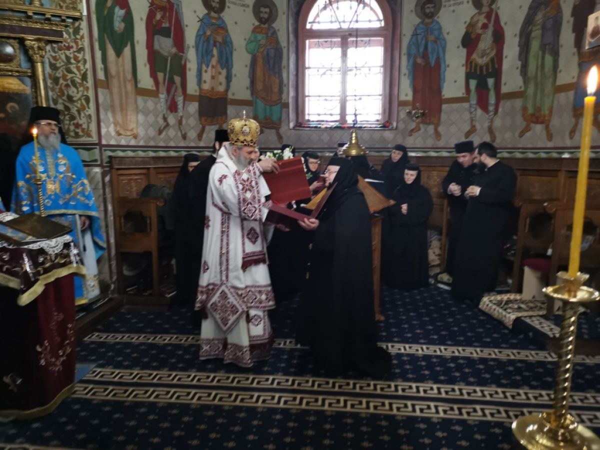 După săvârşirea Sfântei Liturghii, ÎPS Teofan i-a dăruit maicii stareţe „Crucea Patriarhală pentru Stareţi şi Stareţe”, cea mai înaltă distincţie bisericească, ca semn de gratitudine din partea Patriarhiei şi a Preafericirii Sale Daniel, Patriarhul Bisericii Ortodoxe.