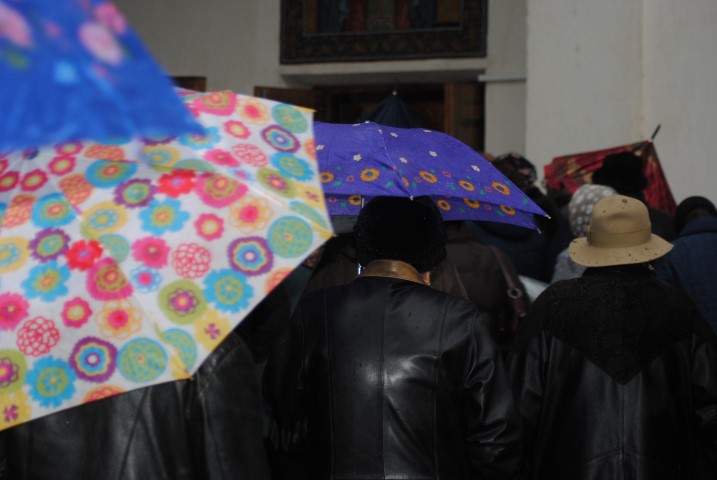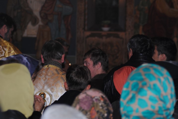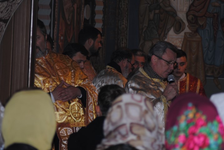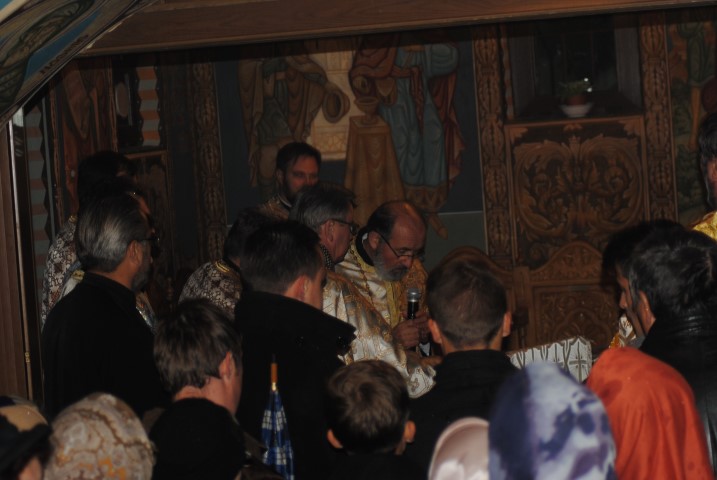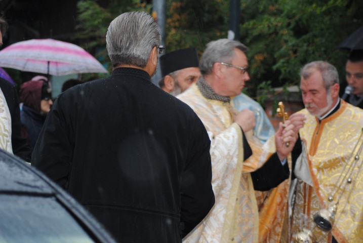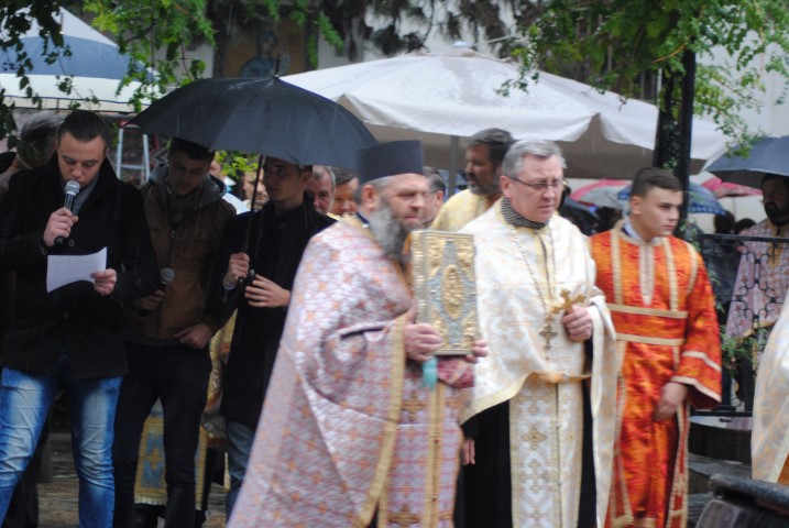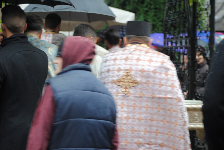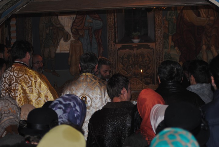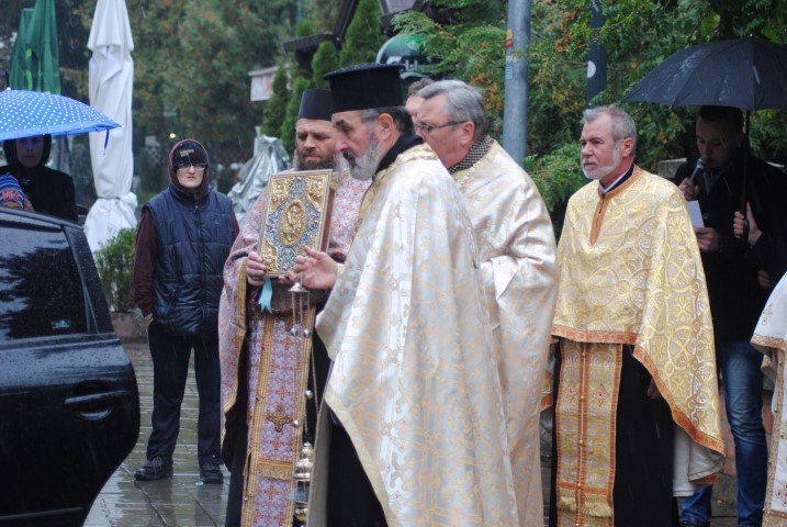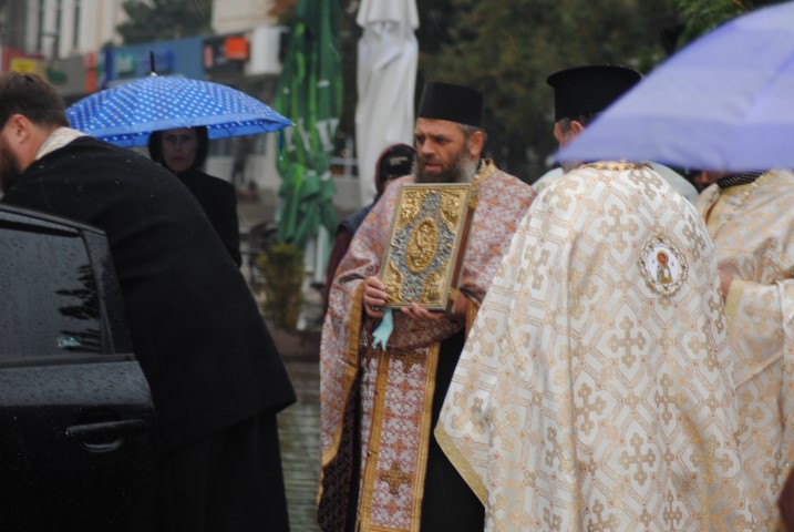 În jurul orei 17.00 racla a fost adusă cu un autoturism până la poarta lăcașului de cult, iar un sobor de preoți a ieșit în întâmpinare. Cu toate că în curtea Bisericii a fost amplasat un mic altar, acolo unde trebuiau depuse moaștele, din cauza condițiilor meteorologice nefavorabile, racla a fost depusă în incinta lăcașului de cult. Temperaturile scăzute de afară nu i-a împiedicat pe botoșăneni să iasă din casă și să vină la Biserica de pe Pietonalul Unirii pentru a se închina la cei 33 de sfinți pentru sănătate, bucurie și noroc. Chiar dacă nu au încăput în lăcașul de cult, unii au stat afară sub umbrele și au ascultat Sfântul Maslu oficiat de șapte preoți.