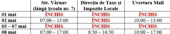 Biroul Relații cu Publicul din Strada Vârnav (lângă Școala nr 7) va fi închis în perioada 1-7 mai 2024, urmând ca acesta să-și reia activitatea de miercuri, 8 mai.