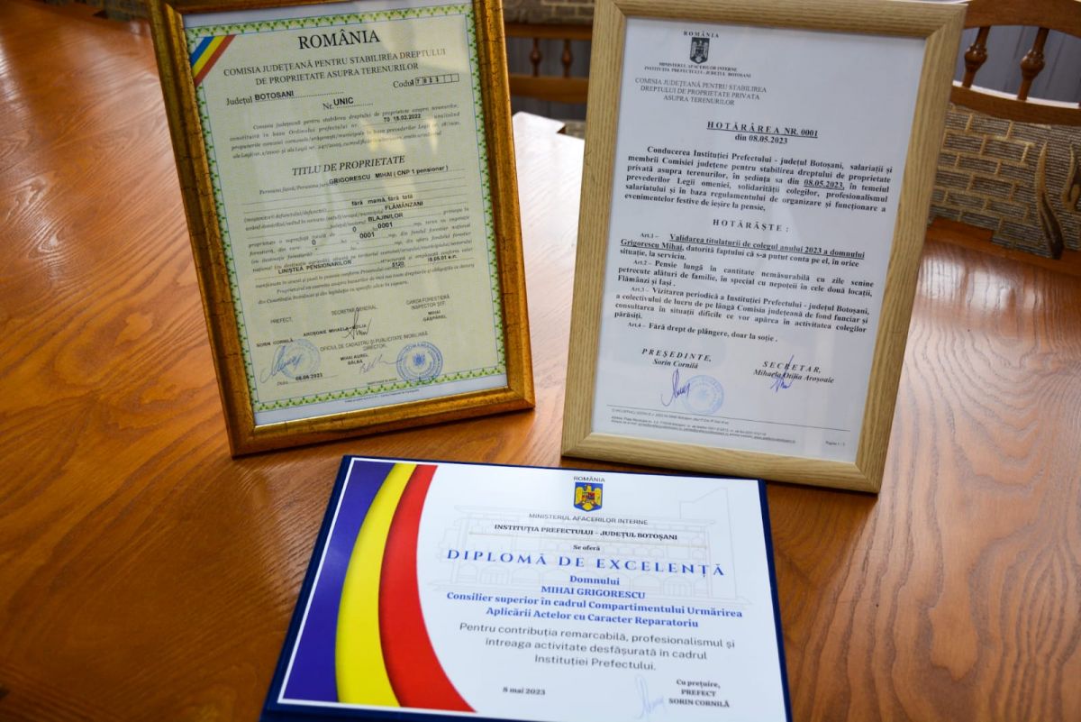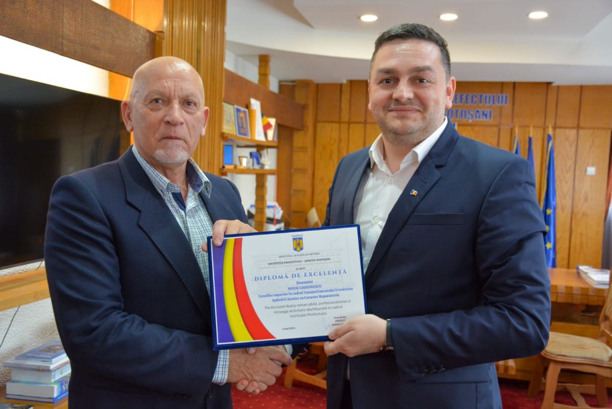 Cu această ocazie, prefectul județului Botoșani, Sorin Cornilă i-a oferit o diplomă de onoare în semn de apreciere pentru contribuția remarcabilă, profesionalismul și întreaga activitate desfășurată în cadrul Instituției Prefectului Județul Botoșani.