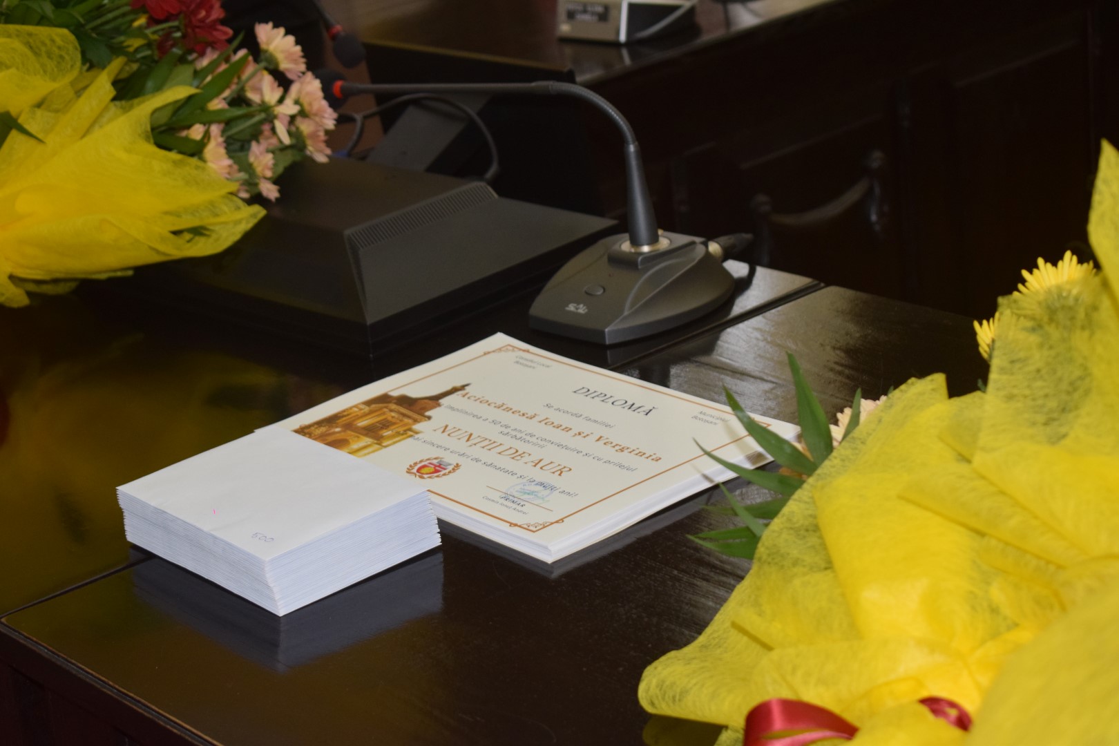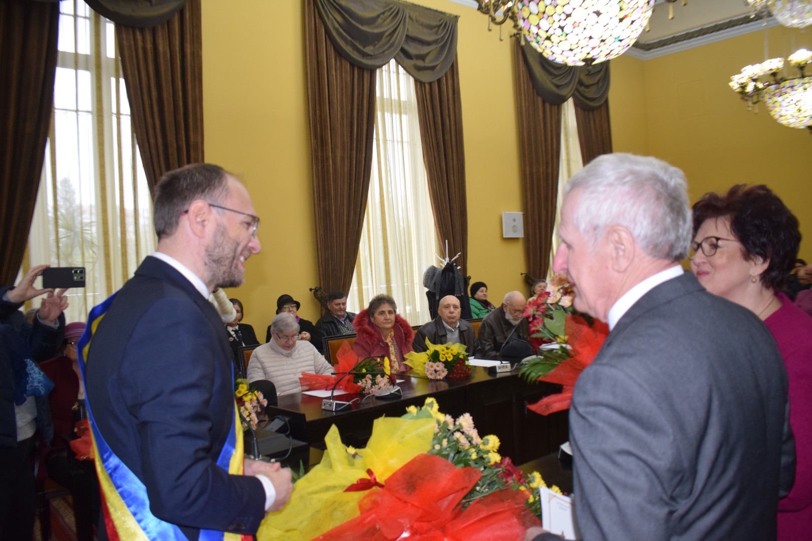 „Mulțumim!”, au răspuns la unison cuplurile sărbătorite pentru longevitate.