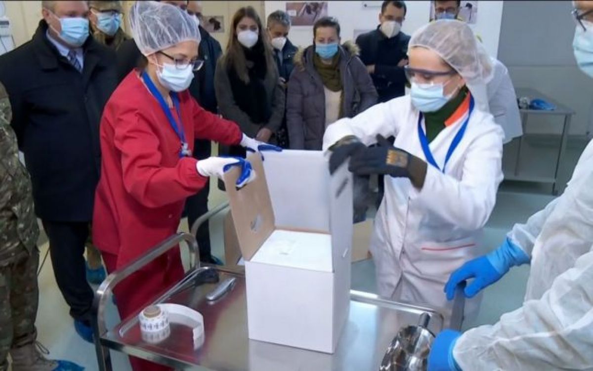 Primele 10.000 de doze de vaccin anti-COVID au ajuns sâmbătă dimineaţă la depozitul de la Institutul Cantacuzino, din Capitală, unde au fost prezenţi prim-ministrul Cîţu, şeful DSU Raed Arafat, coordonatorul campaniei de vaccinare, Valeriu Gheorghiţă , ministrul Sănătăţii Vlad Voiculescu şi ministrul Apărării Nicolae Ciucă.