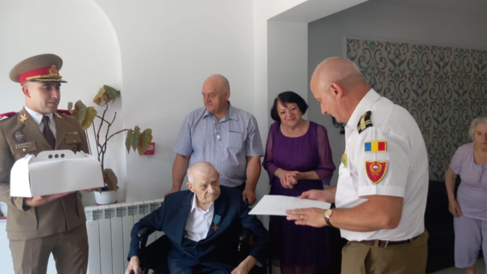 La evenimentul emoționant au participat familia vârstnicului, dar și reprezentanți de la Centrul Militar Județean.