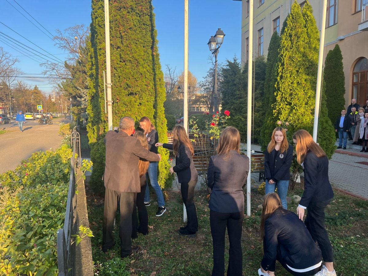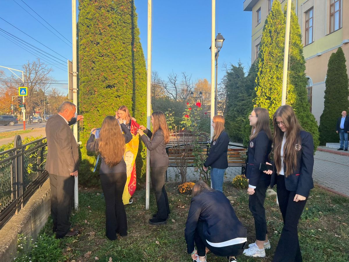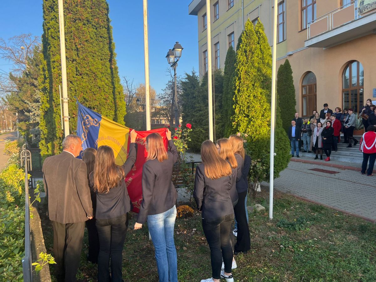 Astfel, în această dimineață, la ora 8.00, într-o atmosferă degajată, dar nu lipsită de aerul sărbătoresc, în prezența profesorilor, cei mai buni elevi ai clasei a XI-a din anul școlar trecut - asistați de către directorul Ioan Onofrei – au arborat steagul Colegiului.