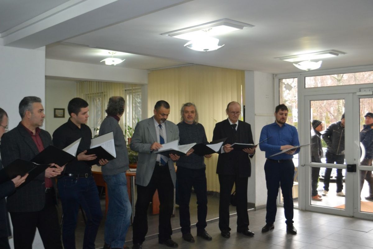 De această dată nu a fost vorba de un cor de copilași, ci unul alcătuit din 8 bărbați care i-au colindat pe reprezentanții IPJ.
