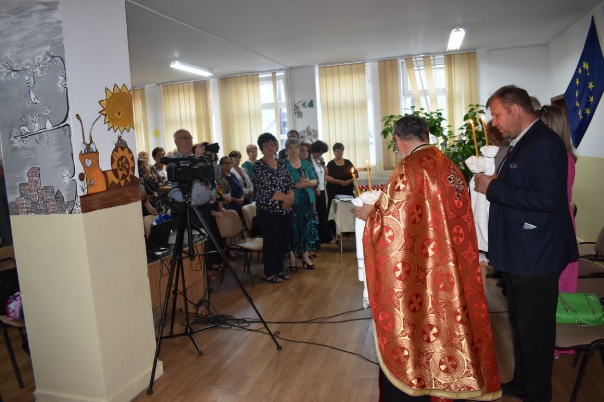 Părintele Marius Ciobanu a oficiat o slujbă de pomenire pentru foștii profesori sau elevi care au plecat la Ceruri și a adresat o rugăciune de mulțumire pentru cei prezenți.