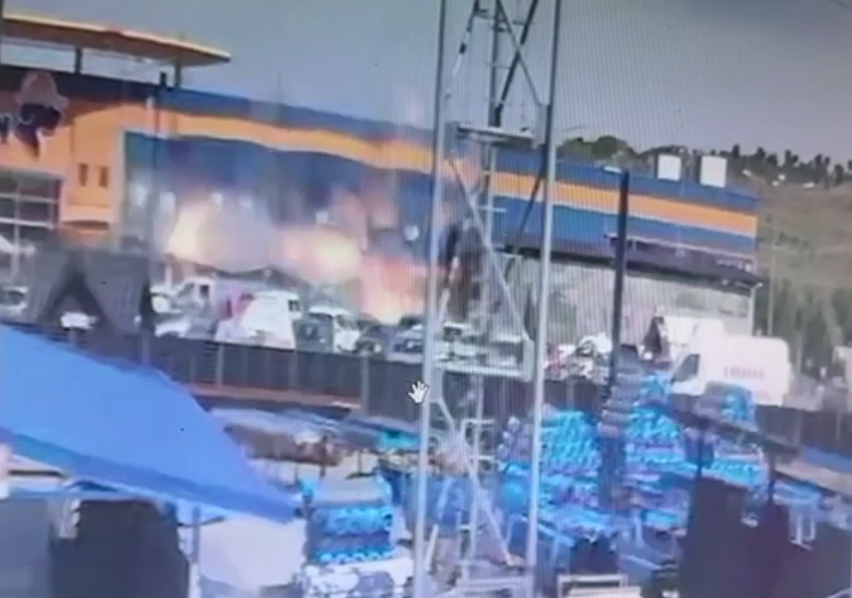 Din imaginile surprinse se poate observa momentul producerii deflagrației, cu flăcările care au izbucnit imediat. În fața magazinului se aflau mai multe persoane și la acest moment sunt confirmate 15 victime.