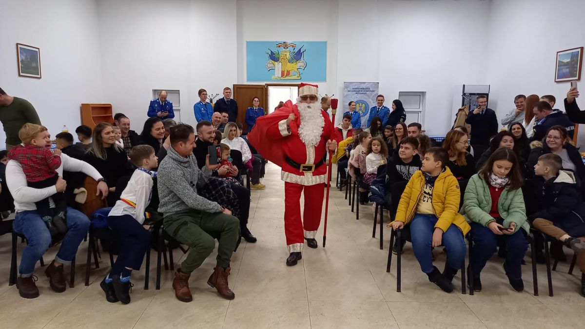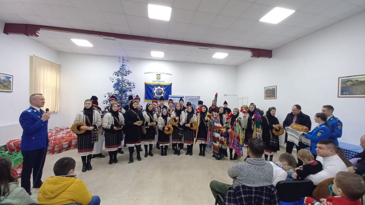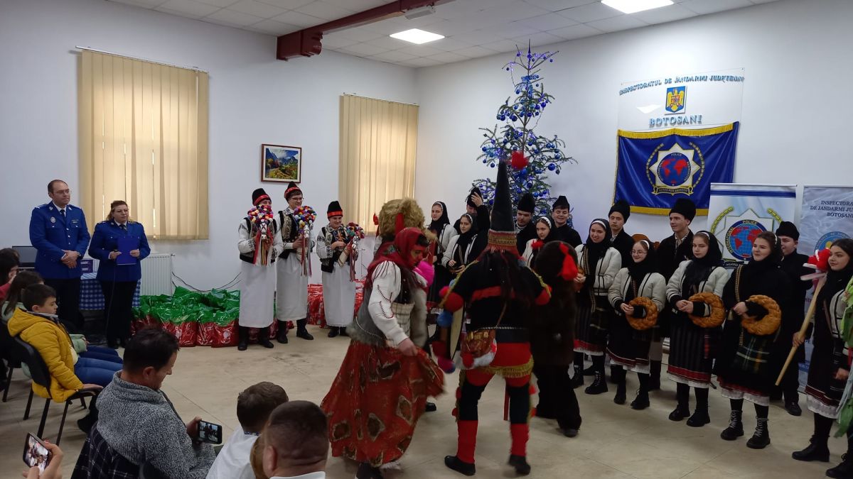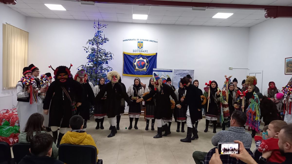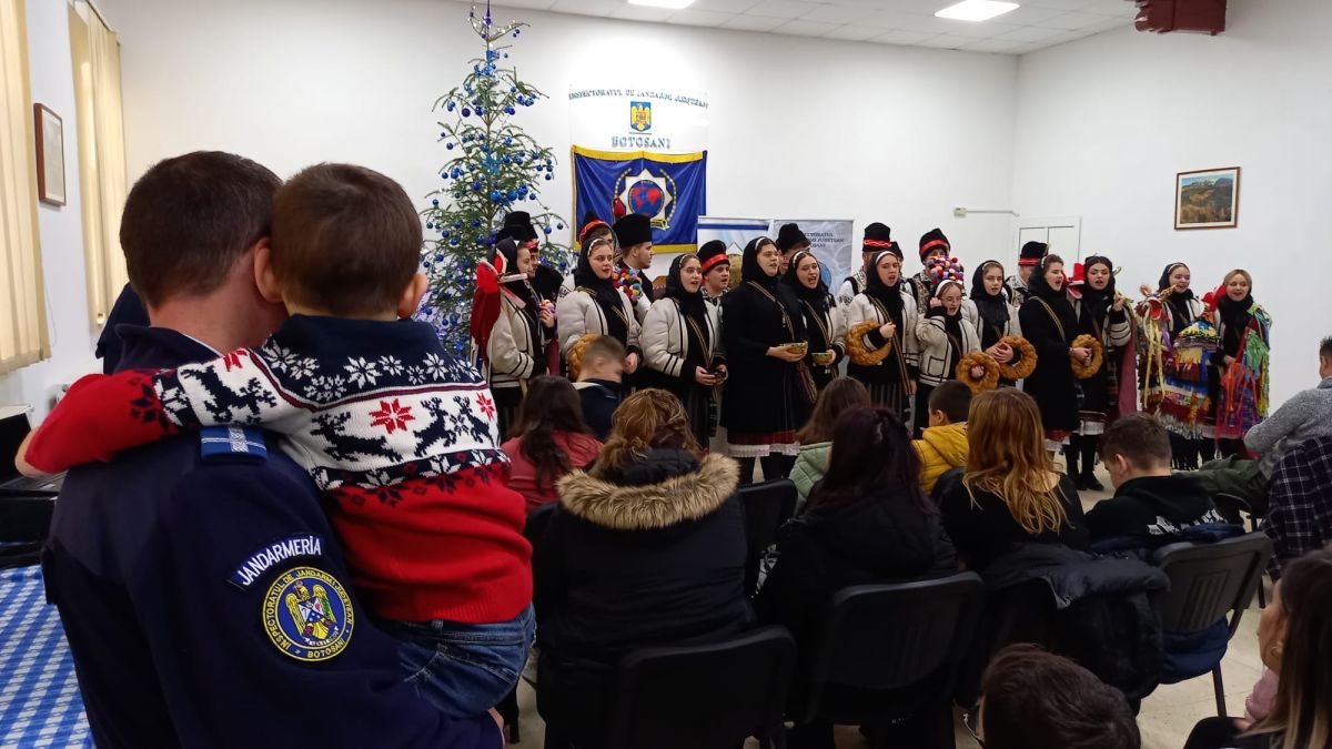 Spectacolul, care a încântat audiența la sediul Inspectoratului de Jandarmi Județean Botoșani, a fost urmat de vizita surpriză a lui Moș Crăciun, sosit cu sacul încărcat de daruri pentru copiii cuminți.
