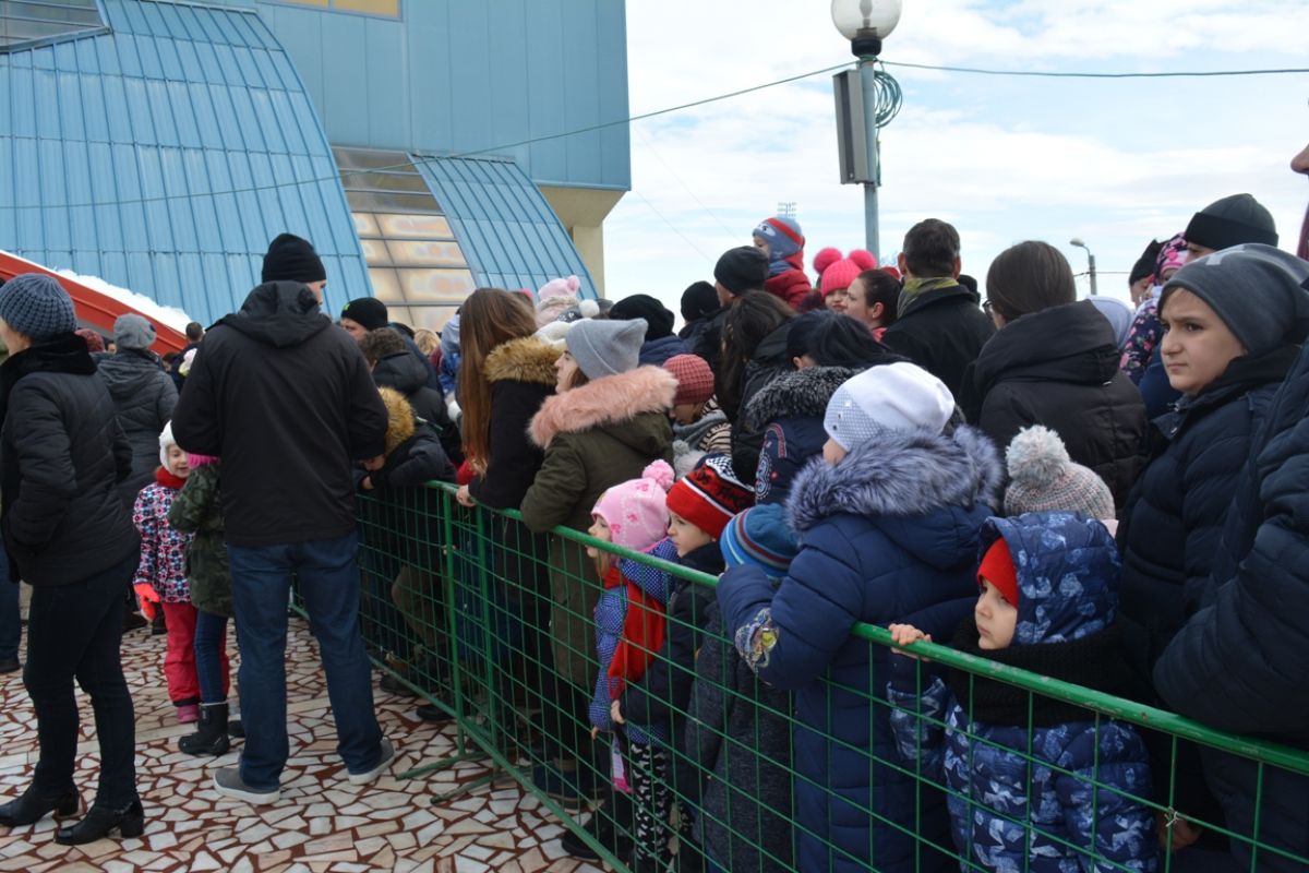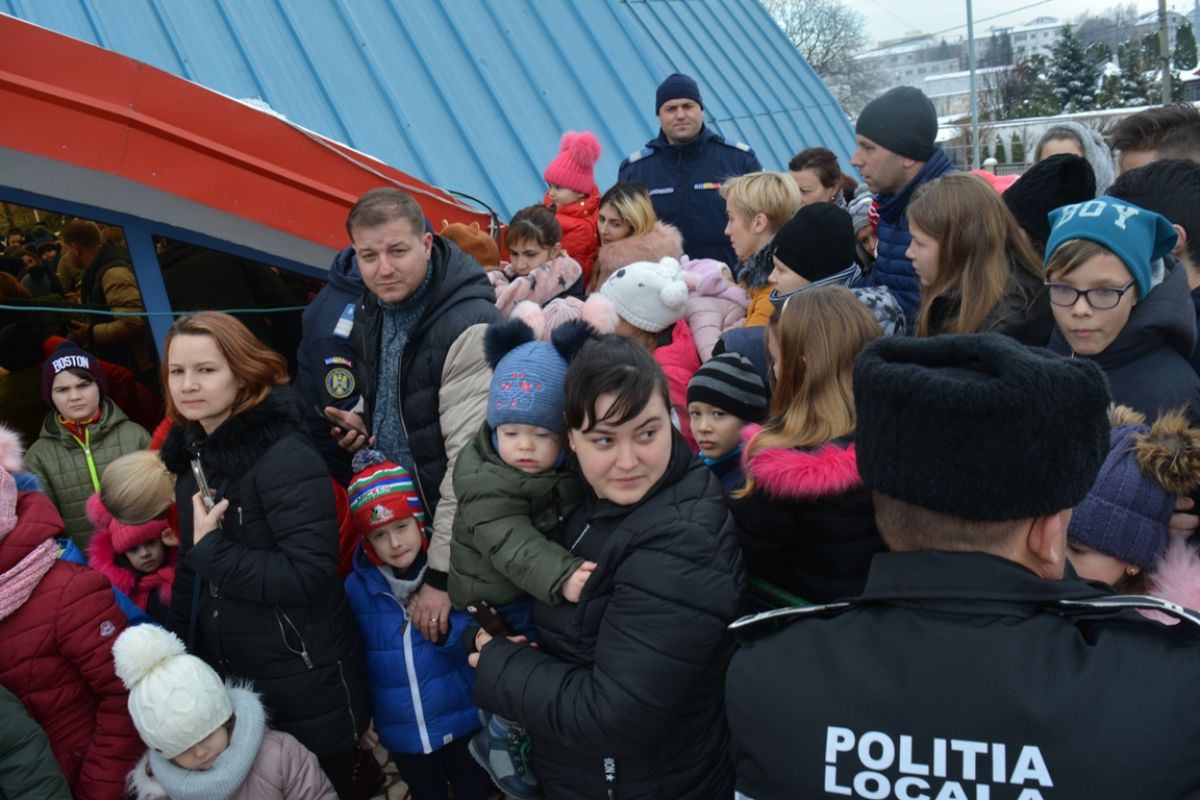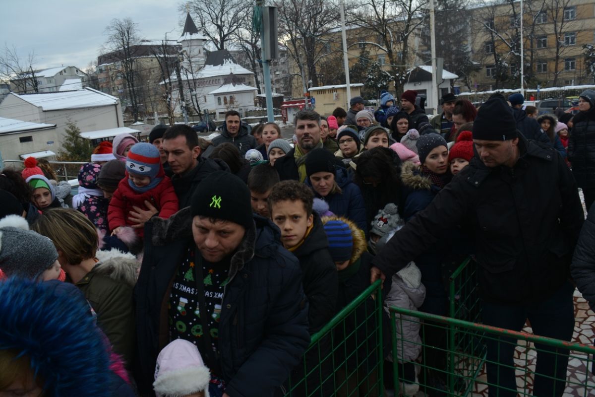 Iar cei mici nu s-au lăsat prea mult așteptați. La ora 12:00, stabilită pentru întâlnire, se aflau deja lângă patinoar câteva sute de copii și părinți.